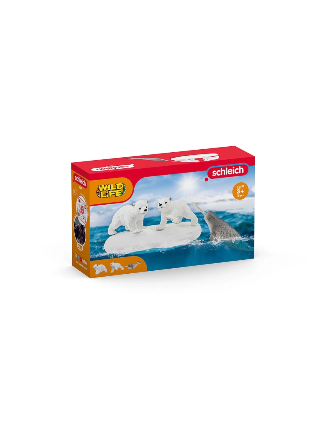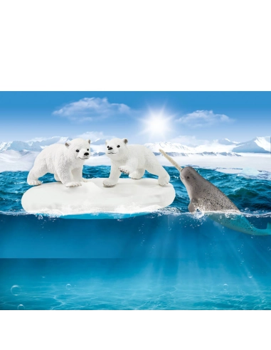 La figurine "Glissade en folie des ours polaires" Schleich 42531 offre une scène ludique et éducative avec des ours polaires. Cette figurine inclut un iceberg flottant, deux oursons polaires et un narval, offrant une représentation vivante de la vie dans l'Arctique.