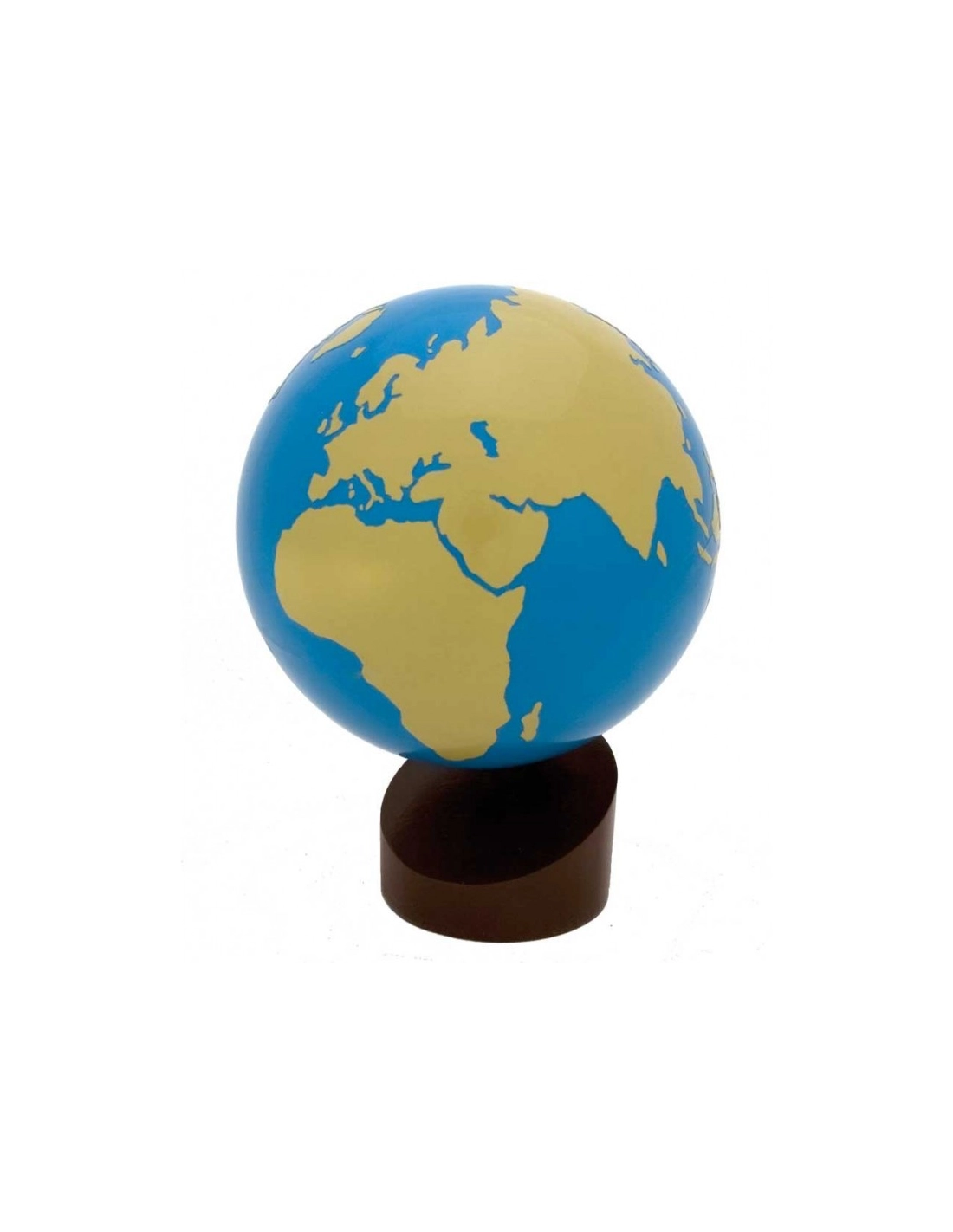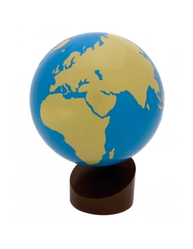 Le globe de terre et d'eau permet à l'enfant d'appréhender la répartition entre les continents et les océans, et de découvrir la forme du globe terrestre. Il permet une première approche de la géographie et introduit les autres globes et matériels de la méthode Montessori.