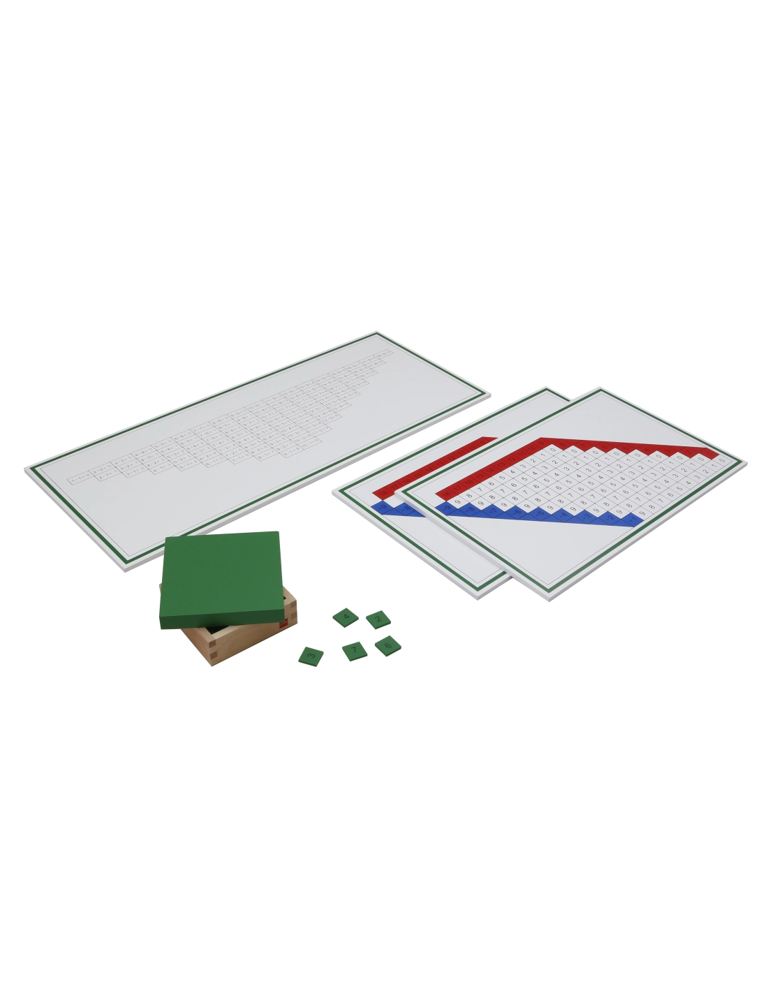 Les graphiques de travail de soustraction facilitent l'enfant en pratique et la mémorisation des combinaisons de soustraction.Comprend un tableau de contrôle, 2 cartes de travail et une boîte de copeaux de réponse en bois.
