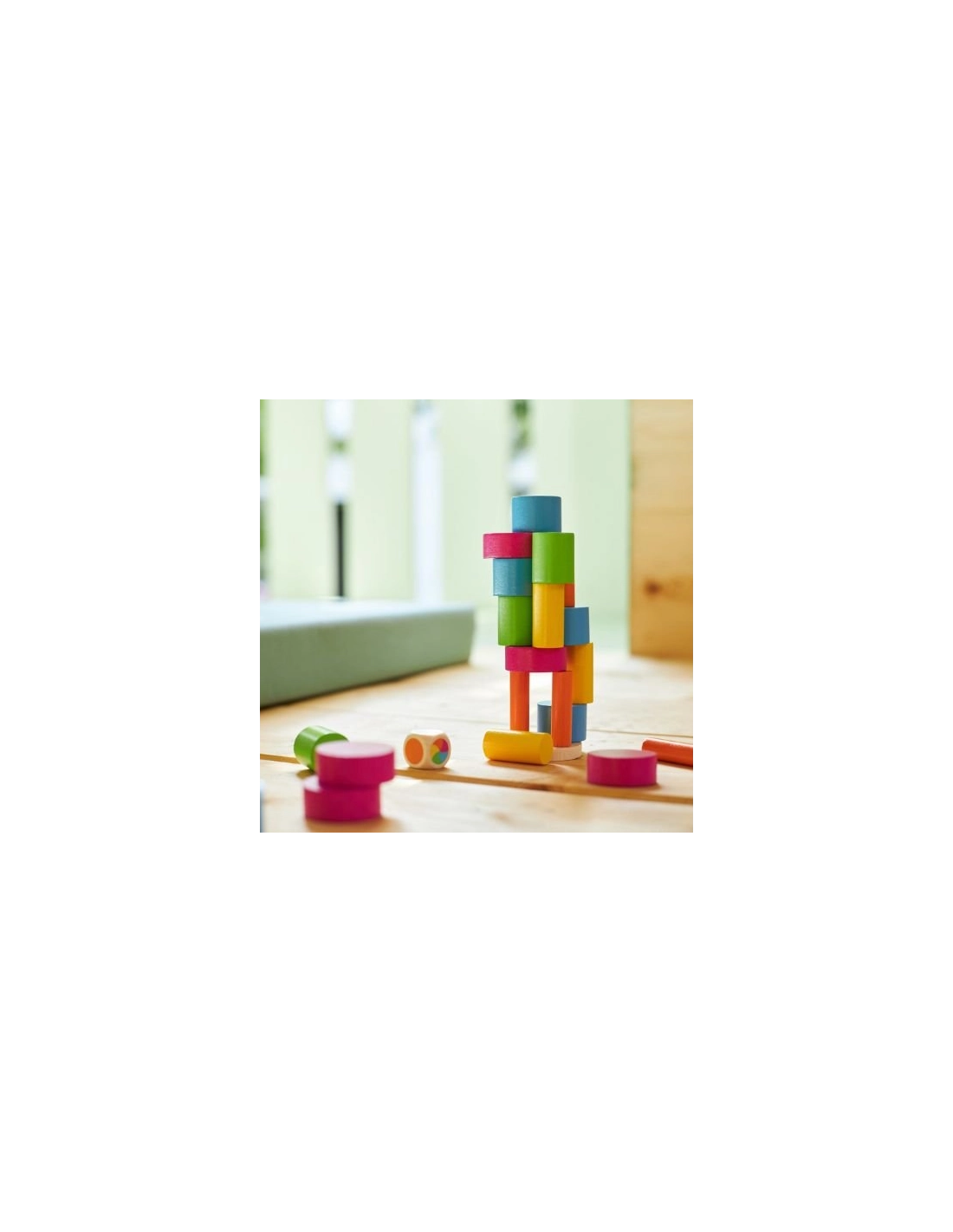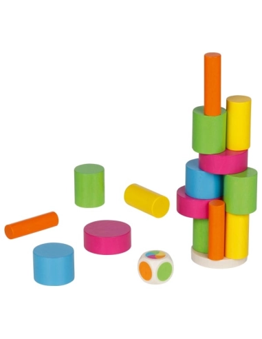 Tout à fait ! Ce jeu d'adresse est justement excellent pour développer progressivement la motricité fine. Les pièces sont suffisamment grandes pour être facilement manipulables, et le jeu peut être adapté en fonction des capacités de chacun. Pour les enfants ayant des difficultés particulières, vous pouvez commencer par des variantes plus simples, comme empiler librement sans contrainte de couleur, ou jouer en mode coopératif.