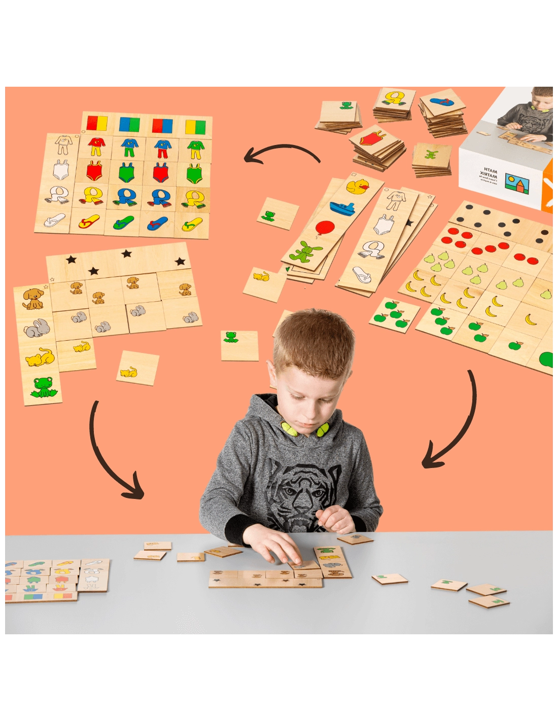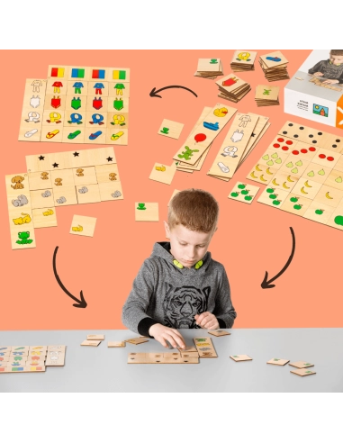 Pratiquez l'orientation spatiale en triant les cartes-images dans leurs emplacements respectifs sur la matrice. En savoir plus sur la taille, la position, les combinaisons de couleurs et les quantités.