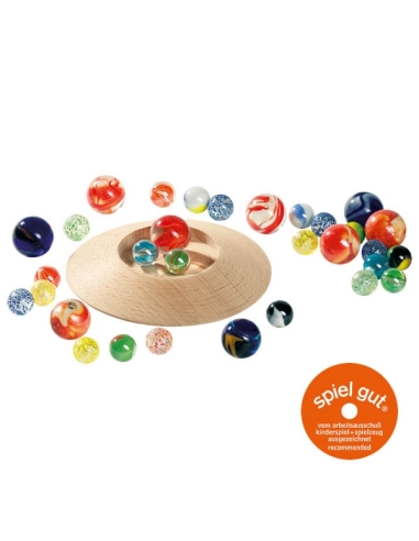 La partie de billes a commencé ! Ce jeu de billes avec plateau en bois de hêtre est un incontournable pour les amateurs de jeux classiques et éducatifs. Avec son plateau robuste et ses 31 billes colorées, ce jeu est conçu pour offrir des heures de plaisir tout en développant les compétences motrices et la concentration des enfants.