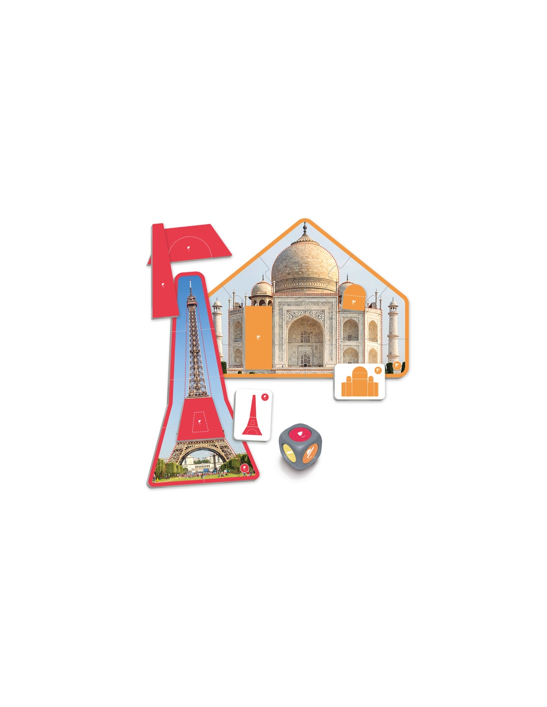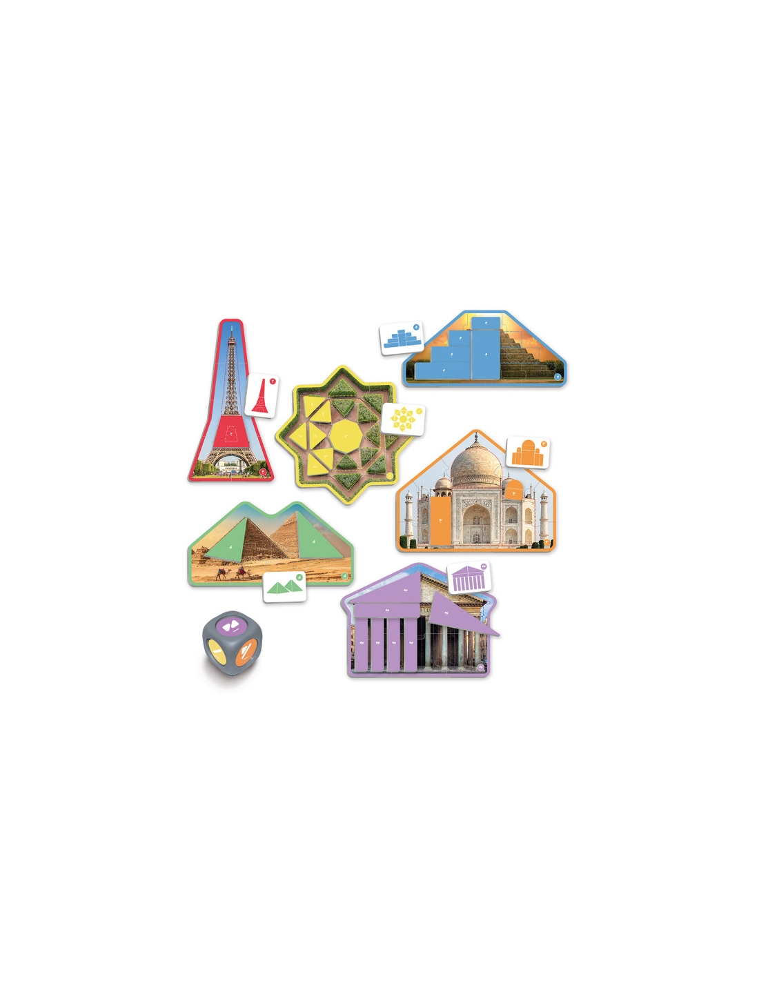 Jeu Memory grand format avec 34 cartes photos réelles présentant les plus beaux lieux et monuments du monde. Ce jeu de mémoire combine découverte géographique et développement de la concentration.