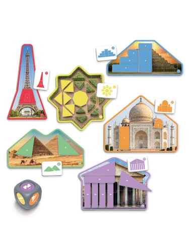 Avec ses 350 pièces ce puzzle mesure 99?cm, les enfants découvrent les curiosités du Monde, qu'il s'agisse de monuments, d'architecture, ou encore de volcan ou massifs Montagneux.