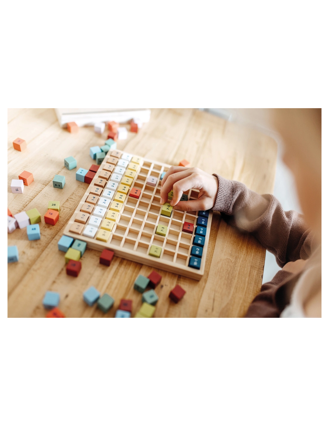 Découvrez ce jeu de tables de multiplications en bois, un outil éducatif parfait pour initier les enfants aux tables de Pythagore. L'apprentissage devient un jeu grâce à la manipulation des cubes et à la découverte des résultats.