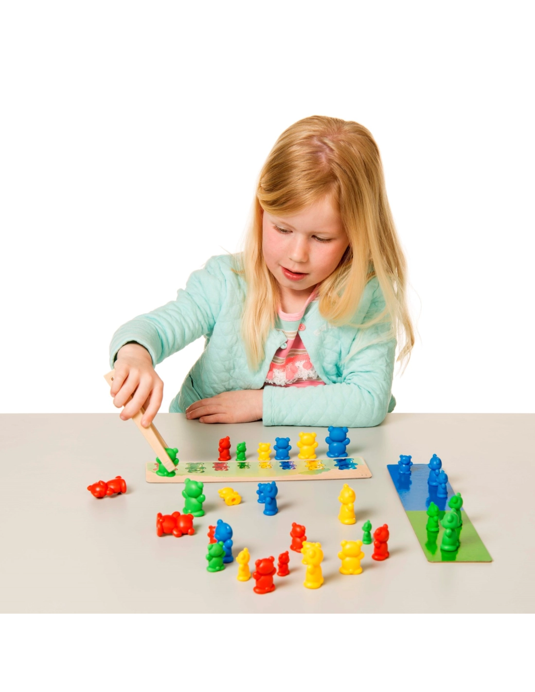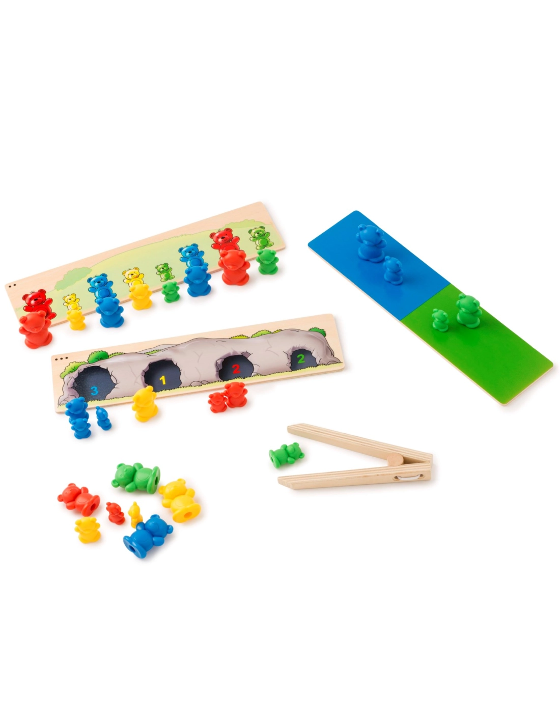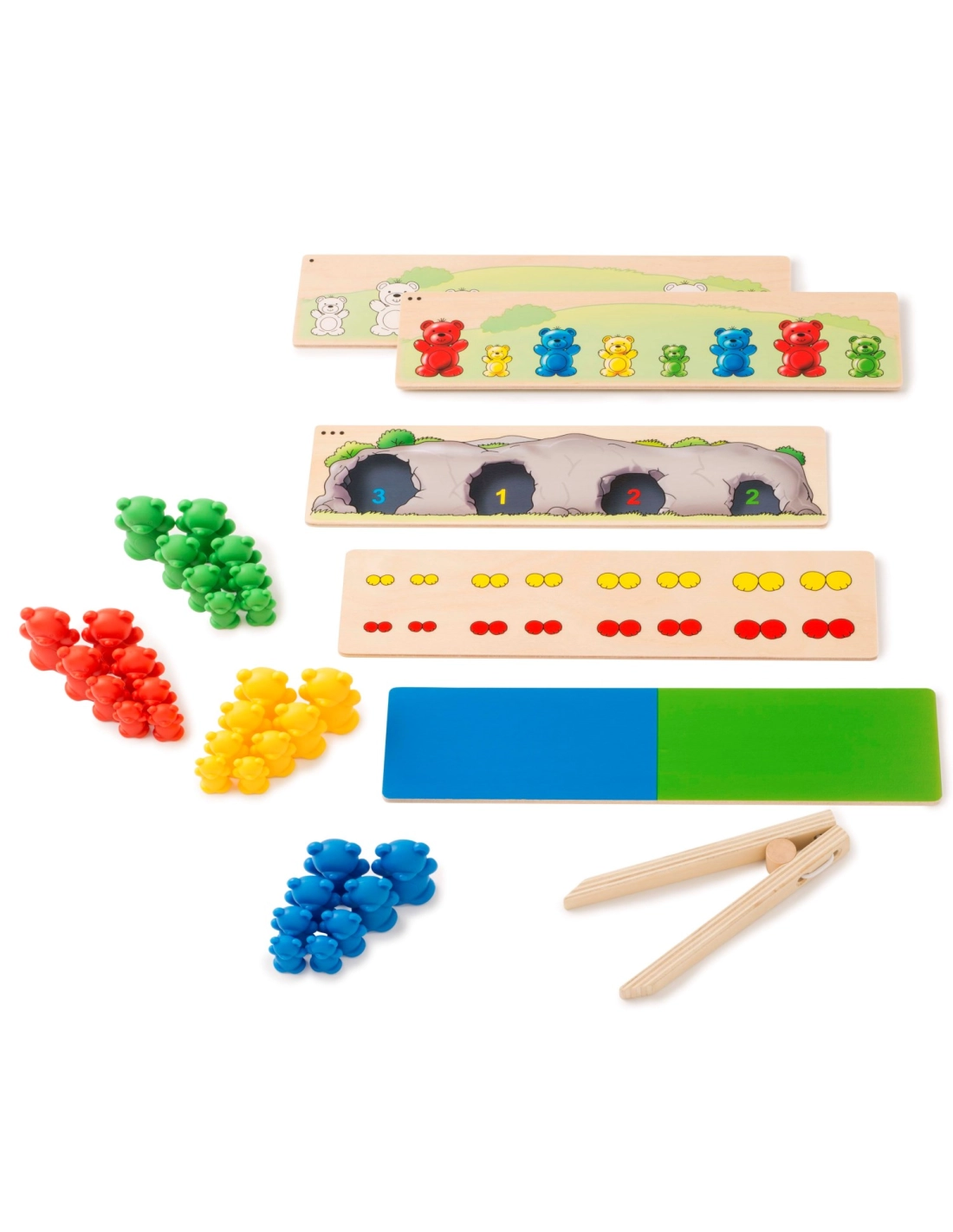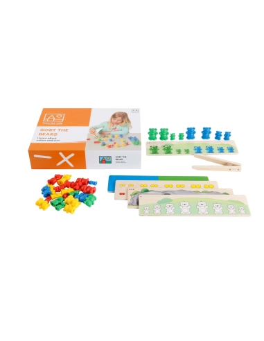 - Tri et association : Les enfants apprennent à trier et à associer les oursons par couleur, taille et quantité.