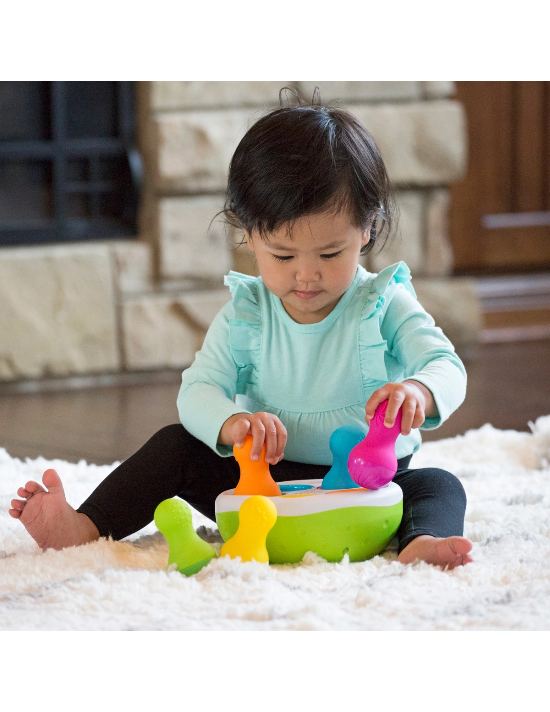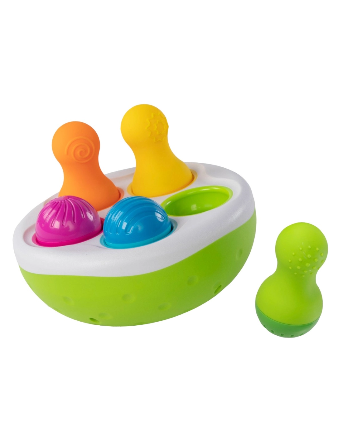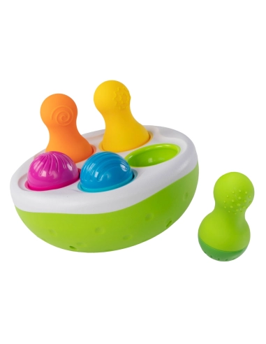 Ce jouet captivant associe 5 quilles texturées à base lestée et un bol toujours en déséquilibre, offrant une expérience sensorielle complète où l'enfant expérimente le tri, l'équilibre et le mouvement dans une exploration fascinante.