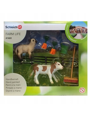 Coffret Figurines animaux de la ferme et accessoires (veau et agneau) Schleich 41422
