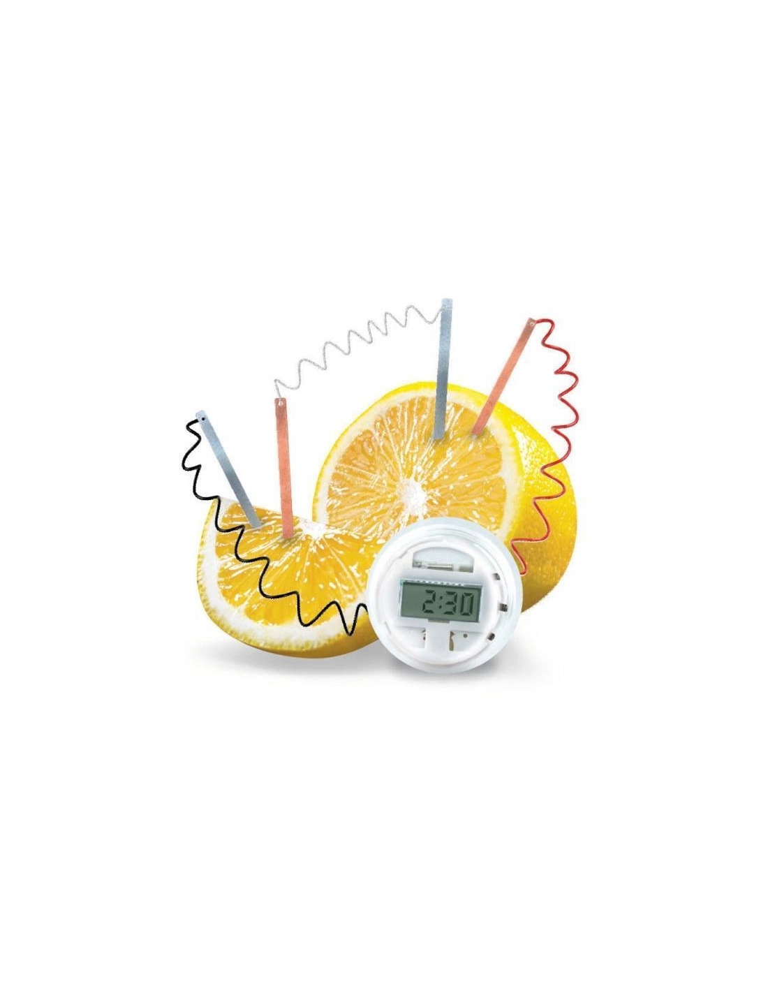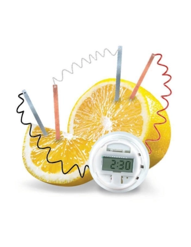 Ce kit permet aux enfants de construire une horloge fonctionnelle alimentée par un simple citron. Il offre une introduction pratique et ludique aux concepts d'électricité, de circuits et de réactions chimiques.