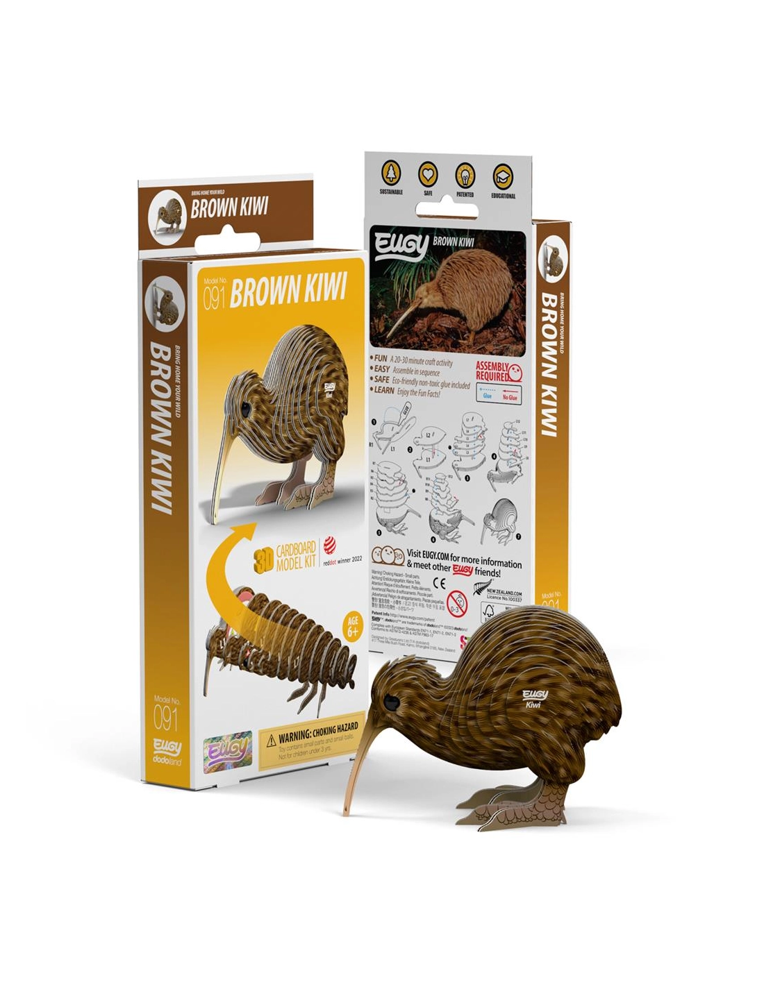 Éco-responsabilité : Carton 100% recyclable, encres végétales et colle non toxique pour respecter l'habitat du vrai Kiwi.