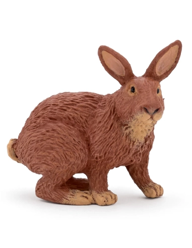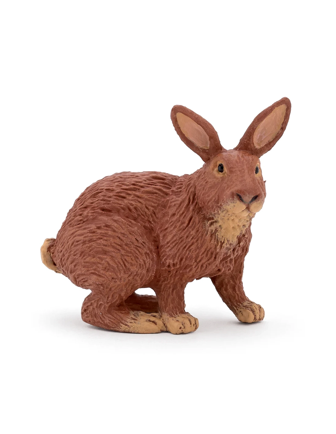 Fourrure brun-marron nuancée sur le dos, ventre plus clair, longues oreilles dressées, posture caractéristique pattes avant au sol — la figurine Lapin marron Papo restitue Oryctolagus cuniculus dans sa posture la plus familière. ~5 × 2,7 × 4,5 cm, peinte à la main. Le lapin domestique pour les collections de ferme et tous les enfants qui ont déjà regardé un lapin sans se douter que sa biologie est plus complexe qu'il n'y paraît.