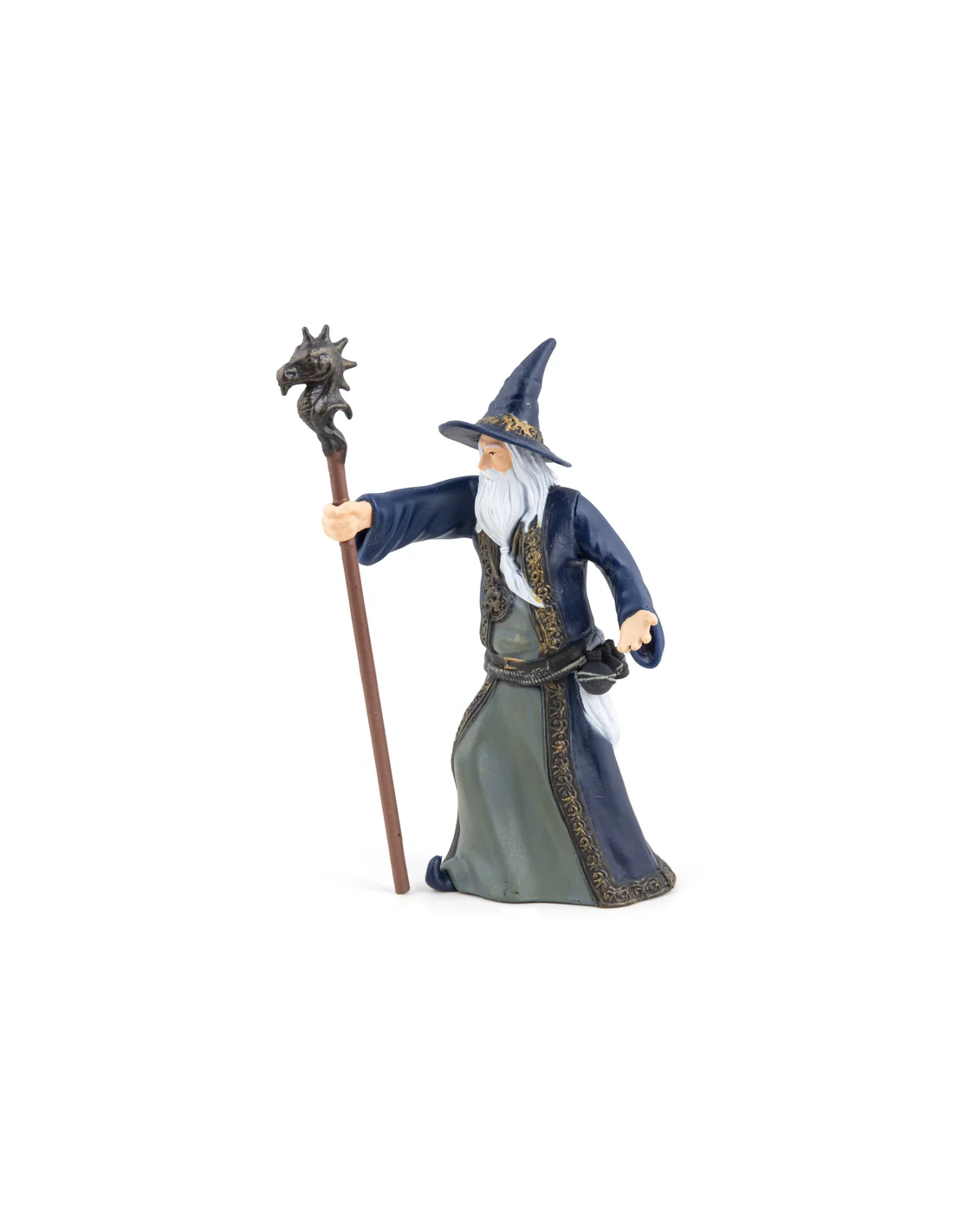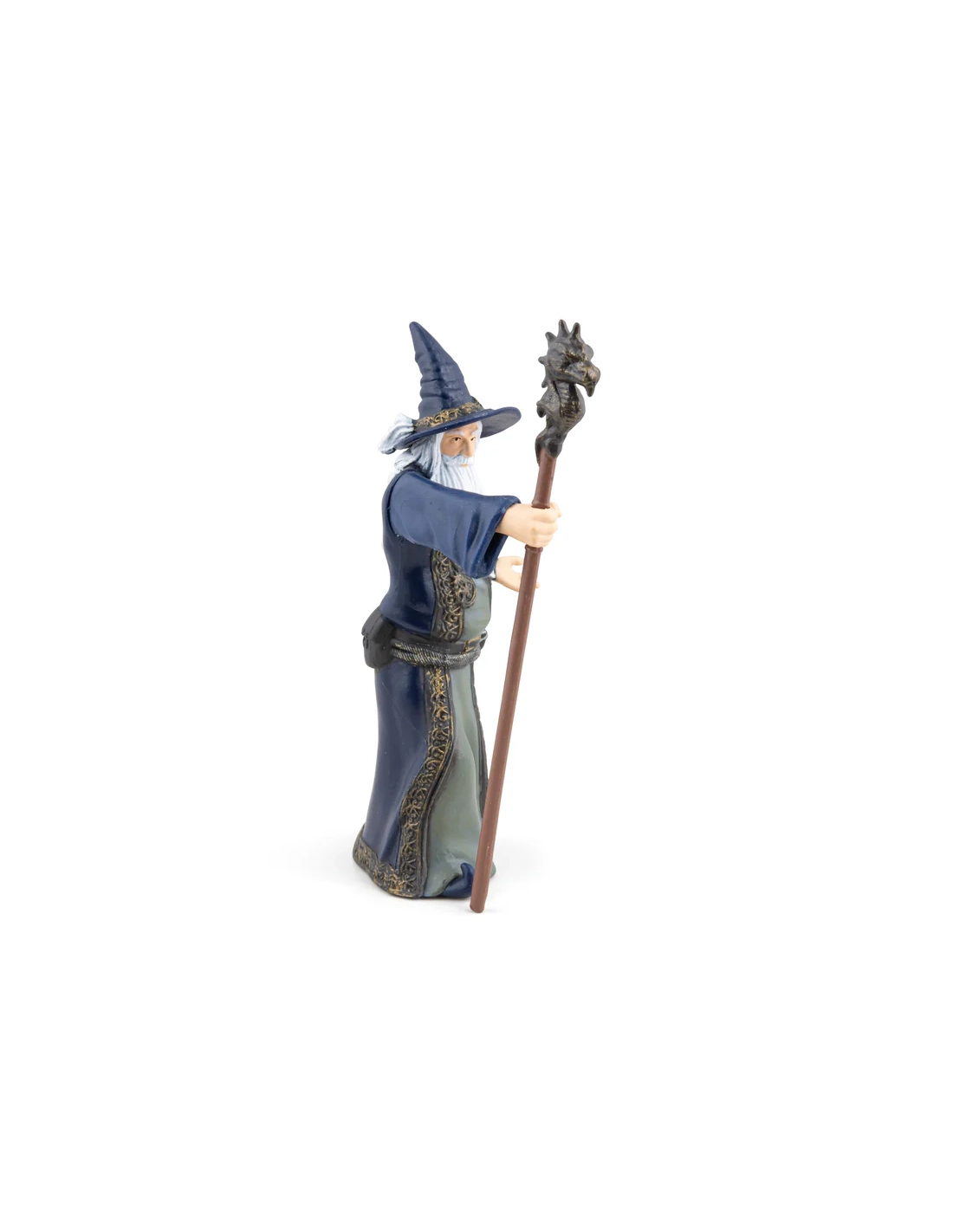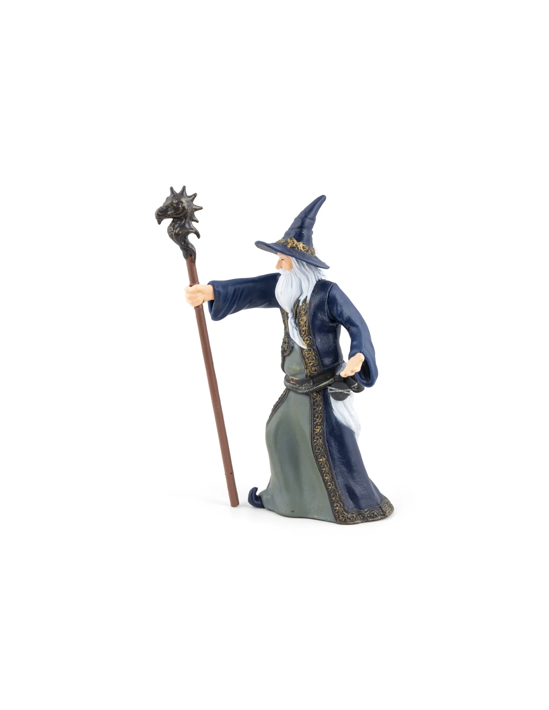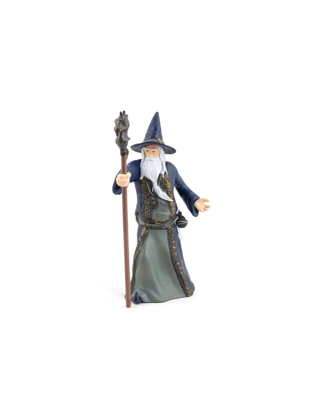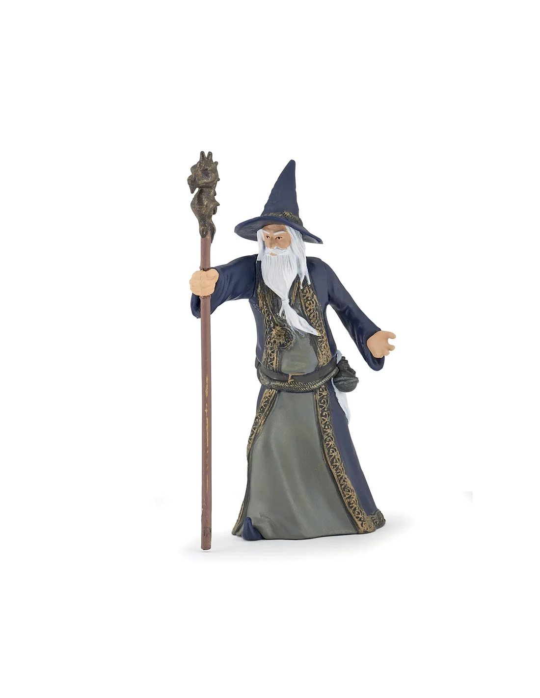 Le vieux mage bienveillant est un personnage non-joueur classique de tout système de jeu de rôle — la source de quêtes, l'arbitre d'énigmes, le conseiller aux informations toujours partielles. Cette figurine Papo est à la bonne échelle pour tout jeu de table.