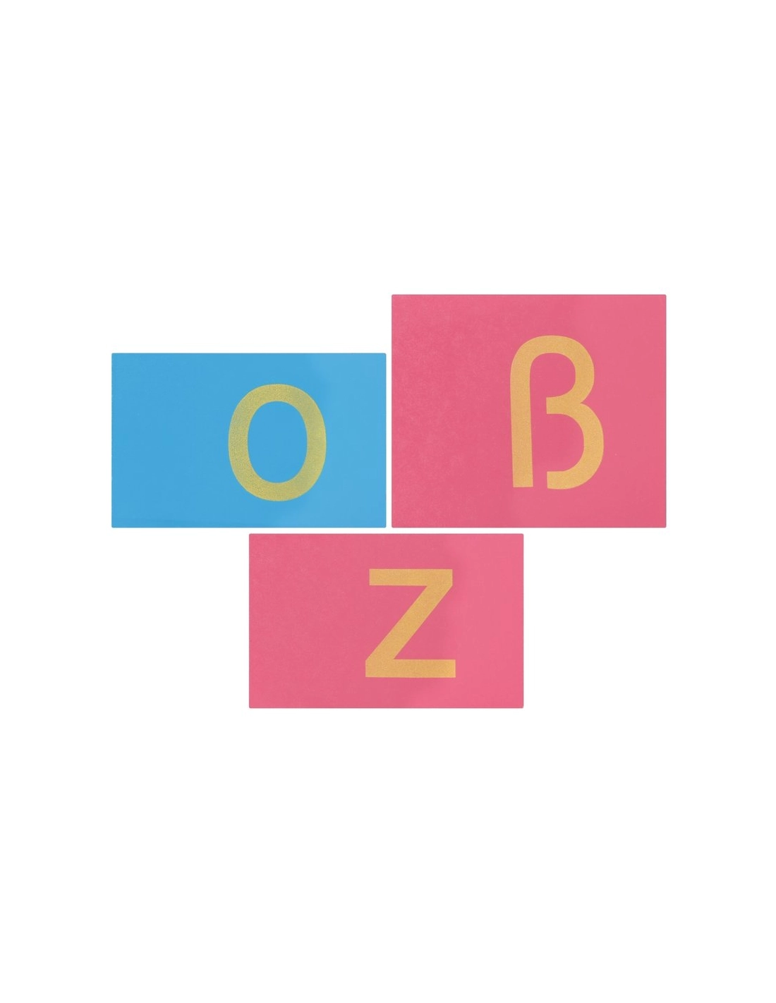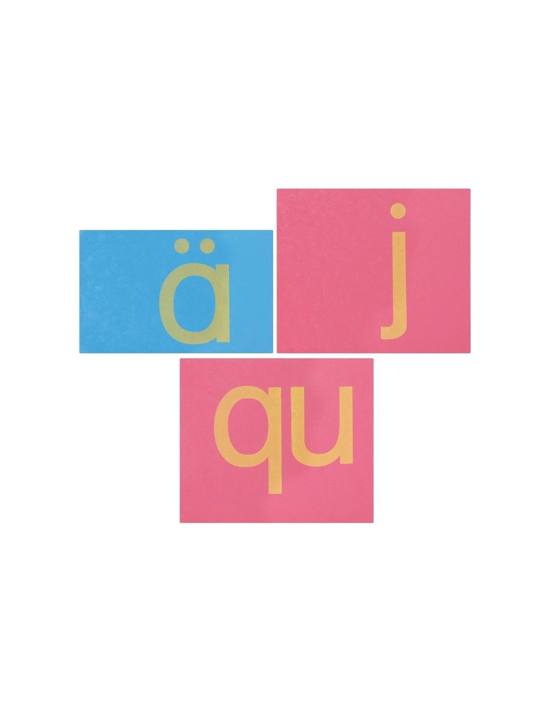 - 30 plaques en bois de tailles différentes, avec des lettres minuscules en papier de verre (voyelles en bleu, consonnes en rouge).