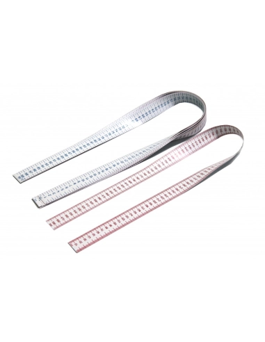 Ce ruban à mesurer de 1 mètre est biface. Le côté rouge est indiqué en millimètre (mm), le côté bleu est en centimètre (cm). Il est indéchirable. Il n'y a pas de métal et permet de compter dès le début (au bord). Largeur du ruban 3cm