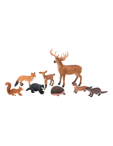 Ce magnifique ensemble Mojo réunit 8 figurines d'animaux emblématiques de nos forêts : un cerf majestueux, un faon tacheté, deux renards, un écureuil, un blaireau, un hérisson et une loutre. Chaque animal est reproduit avec un souci du détail remarquable pour une immersion totale dans l'univers forestier.