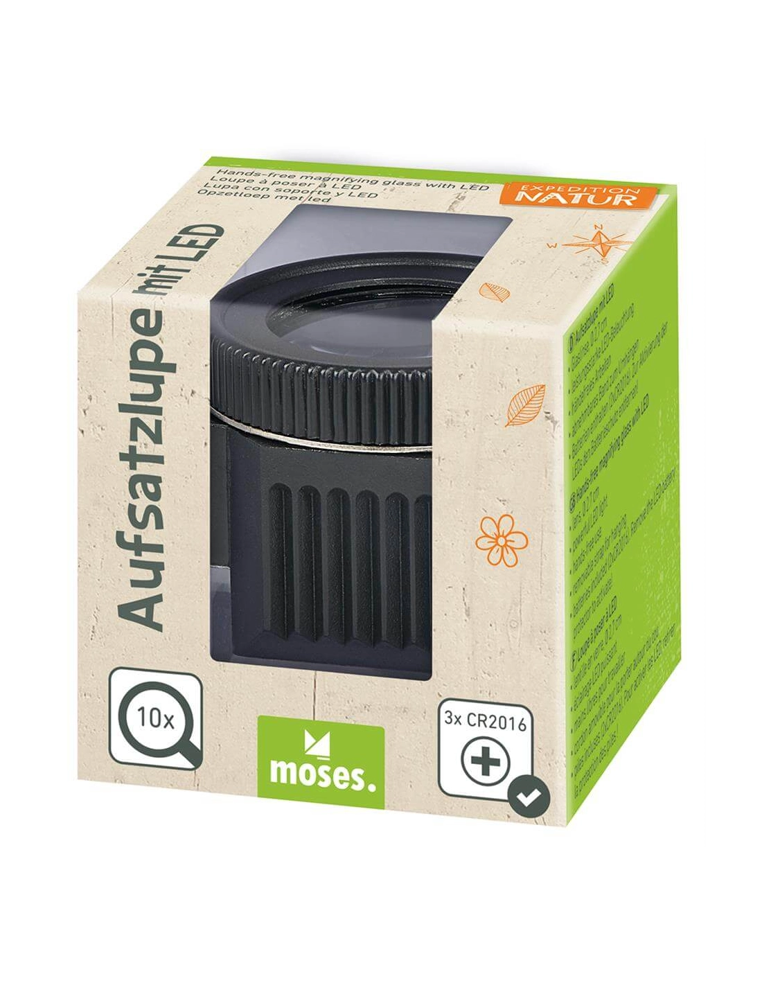 - Attention aux piles : Les piles nécessaires à l'éclairage LED sont incluses dans la loupe. Veillez à les utiliser et les remplacer avec précaution.