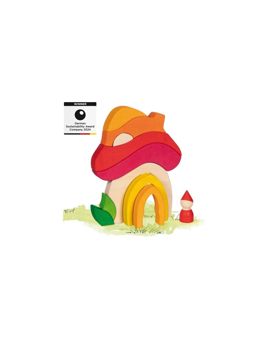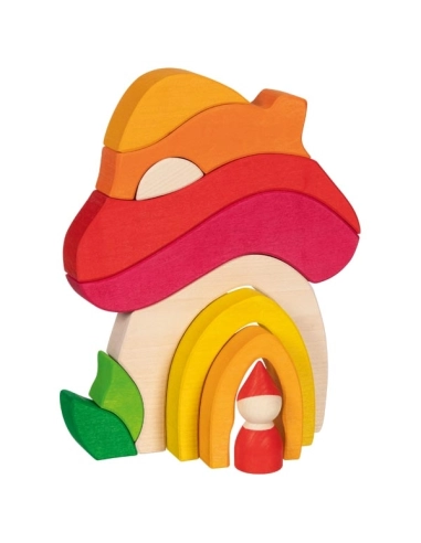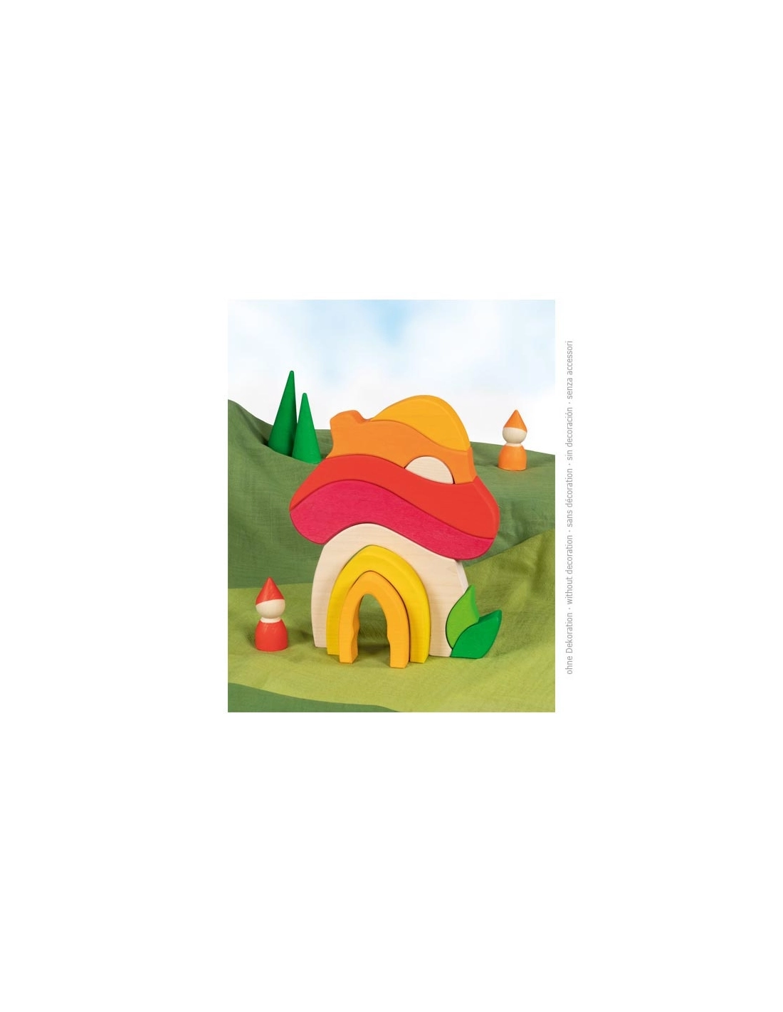 Maison Champignon Goki Evolution - Jeu de Construction Libre Montessori en Bois d'Érable