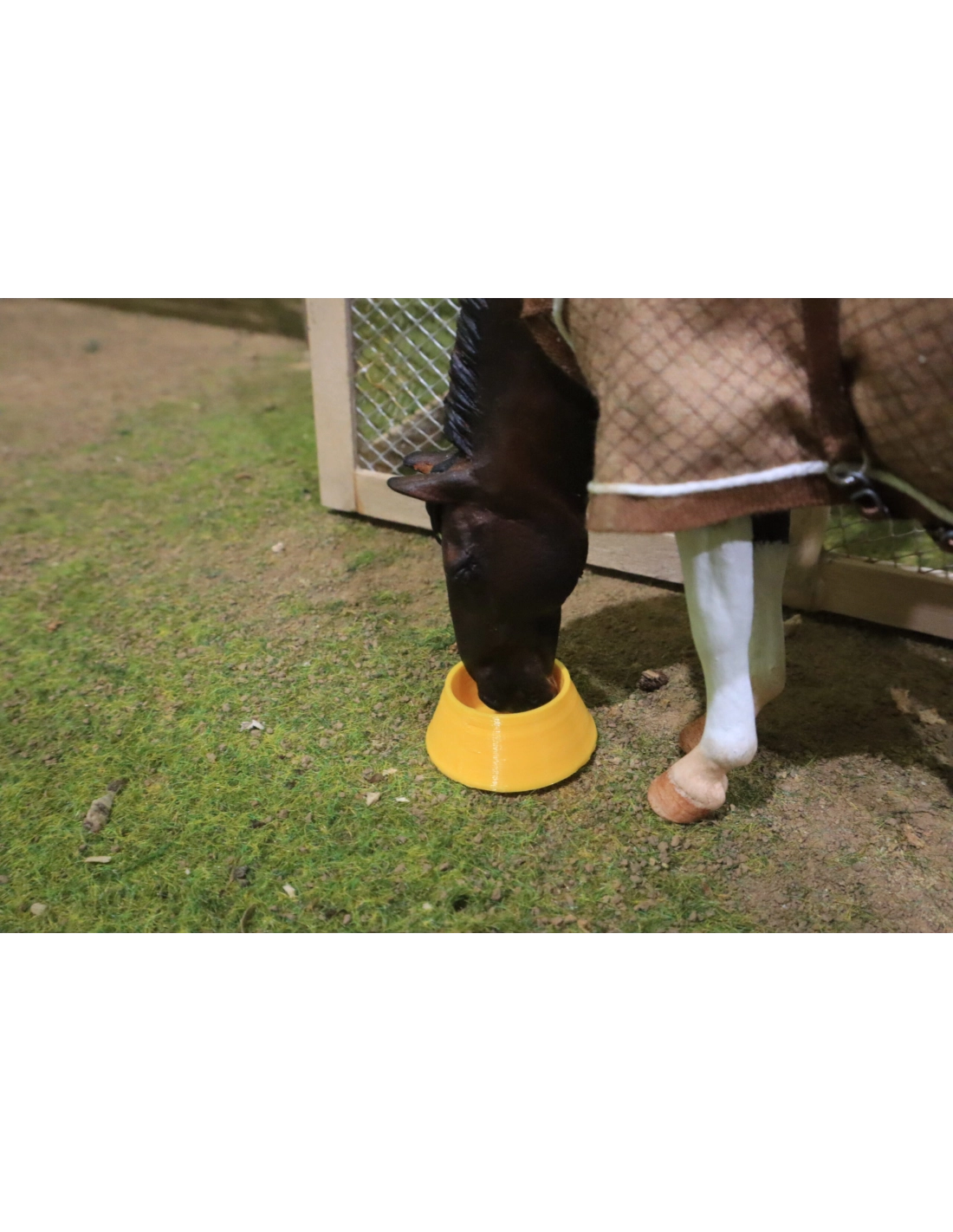 Ces mangeoires de pré aux couleurs vives sont spécialement conçues pour éviter que les chevaux ne les renversent, garantissant une alimentation propre et sans gaspillage. Elles sont idéales pour compléter tout environnement pastoral dans votre collection de figurines équestres, augmentant le réalisme et l'interaction dans les scènes de pâture.