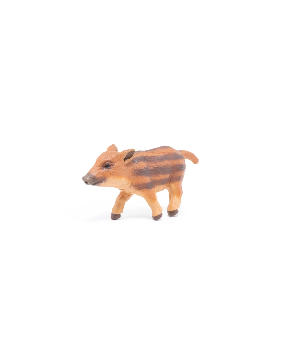 Presque tout le monde a croisé un marcassin — ou entendu quelque chose bouger dans les buissons et s'est demandé si c'était la laie. Cette figurine Papo est la représentation de ce moment universel : le petit rayé qui sort des fougères, les yeux ouverts, curieux, incapable de comprendre encore qu'il vaut mieux s'éloigner des humains.