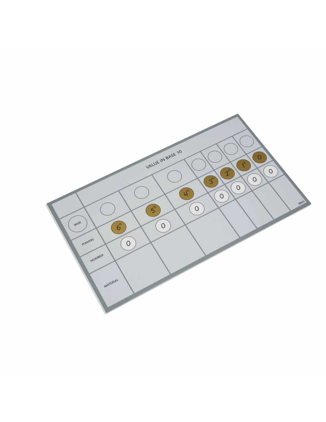 Ce tableau accompagne le matériel multi-bases dans l'exploration des systèmes numériques. Il structure les exercices de conversion et aide à visualiser les relations entre les différentes bases.