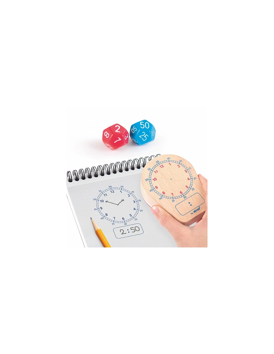 Un outil pédagogique original et ludique pour maîtriser la lecture de l'heure ! Grâce à son grand tampon et ses dés à 12 faces, les enfants s'exercent à afficher et lire l'heure aux formats analogique et numérique. Une approche concrète et amusante pour développer la perception du temps.