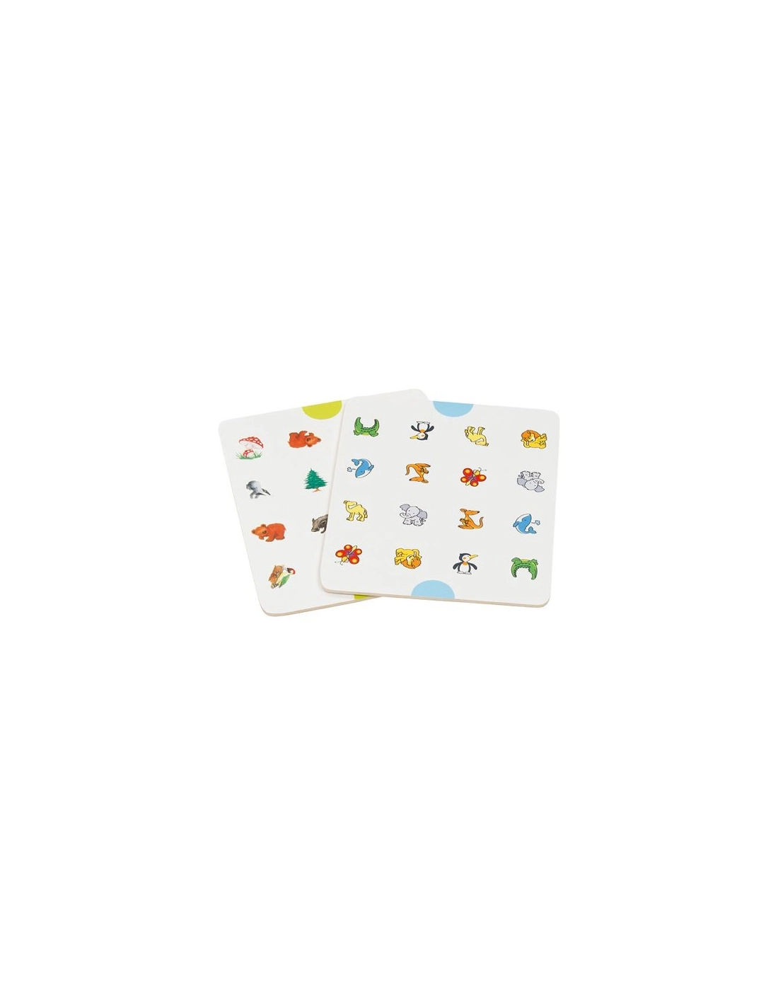 Les 6 planches différentes offrent de nouveaux défis à chaque partie : des animaux adorables, des symboles colorés... Il y en a pour tous les goûts ! Le format compact (15,5 x 15,5 cm) est parfait pour les petites mains, et les pions en bois bleu sont agréables à manipuler.