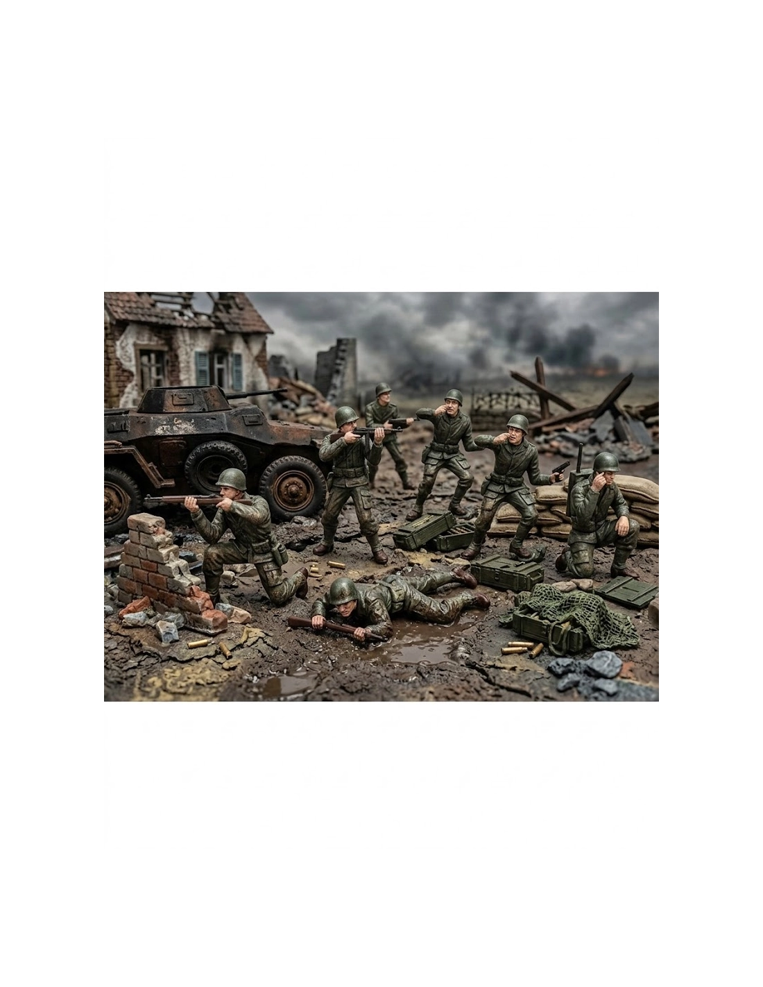 - Spécialisations : Le set met en scène diverses postures stratégiques, notamment un tireur d'élite en position couchée, un soldat en reconnaissance et un opérateur radio assurant les communications vitales.