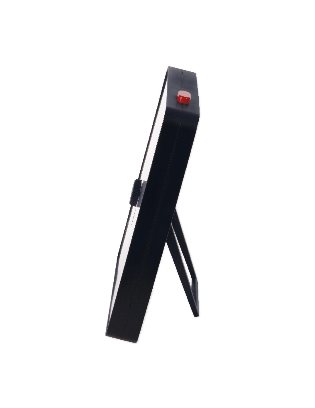 - Fixation : support rabattable et surface aimantée pour une installation sur table, bureau, tableau ou toute surface métallique