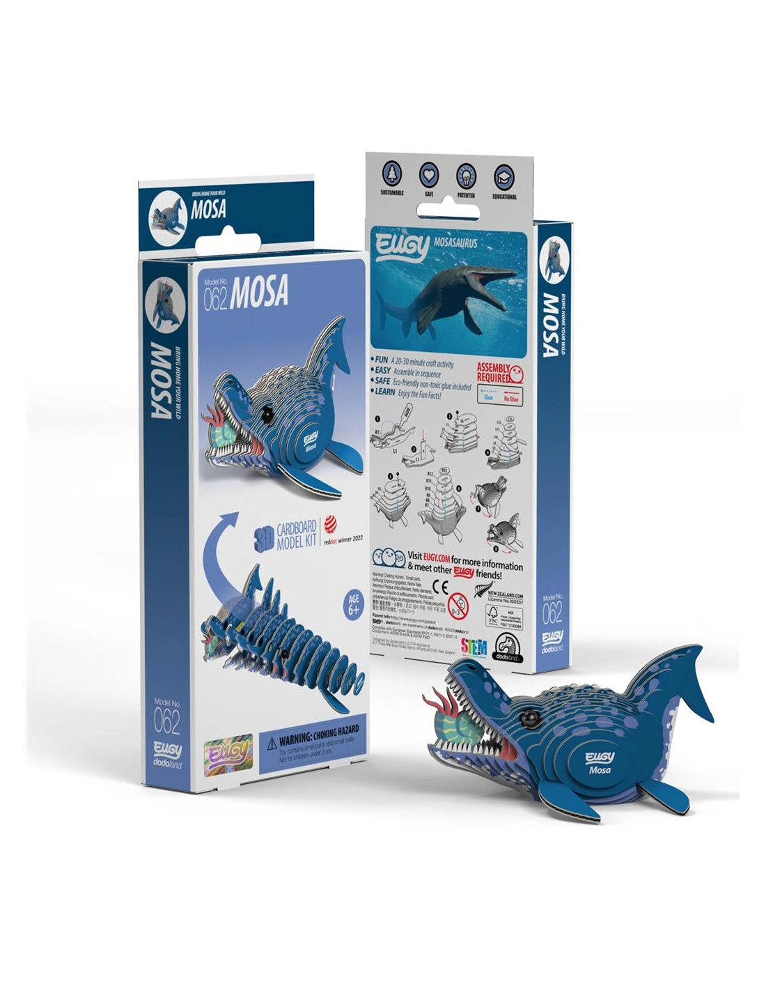 Ce puzzle Eugy 3D Mosasaure vous transporte 70 millions d'années en arrière ! Assemblez ce terrifiant prédateur marin avec 7 planches cartonnées soigneusement conçues pour recréer l'un des plus impressionnants reptiles aquatiques de tous les temps.