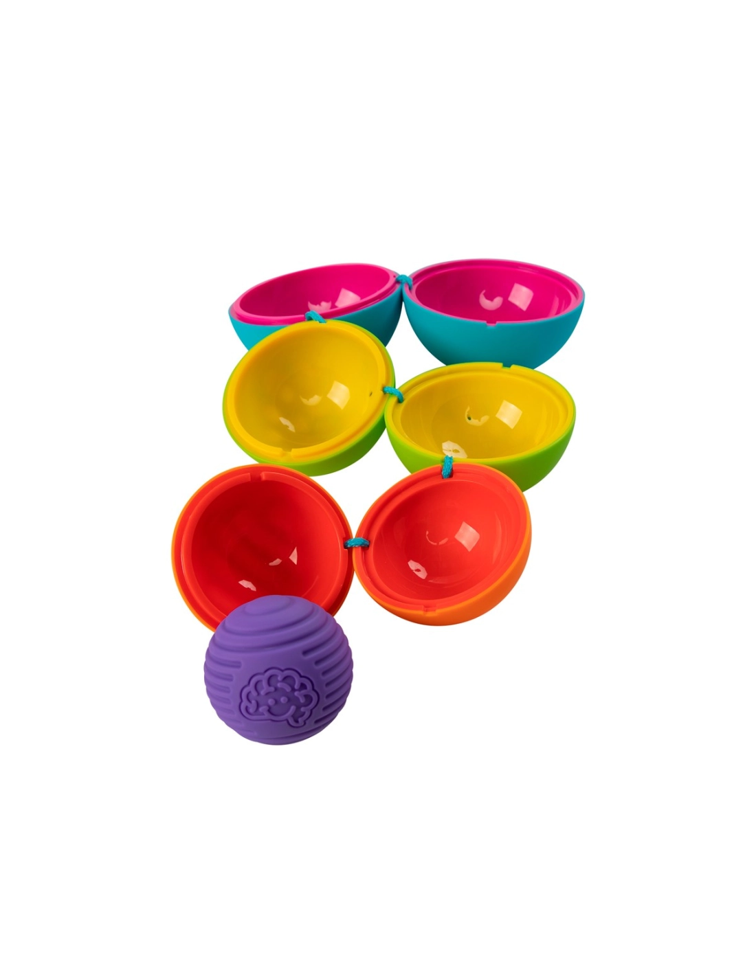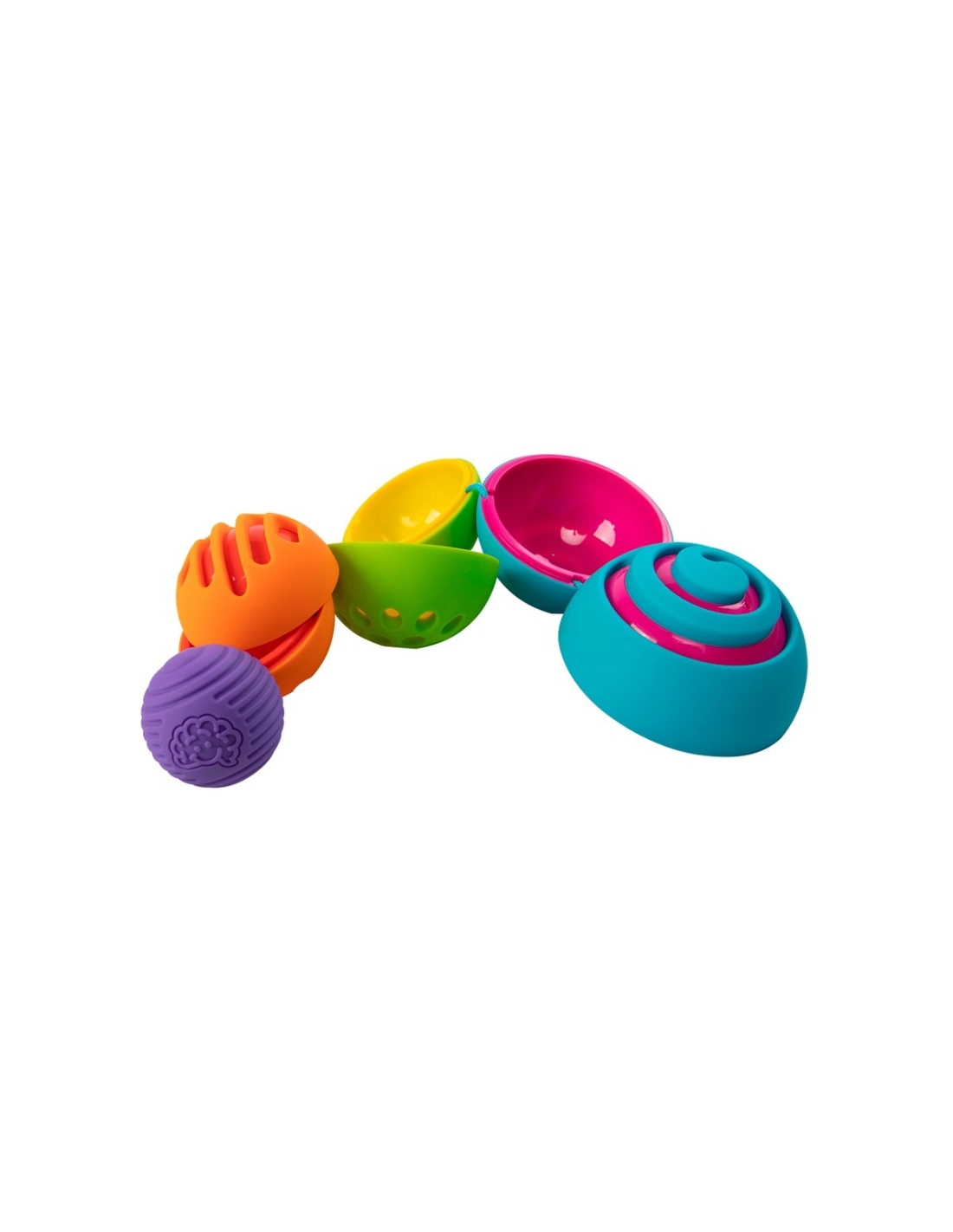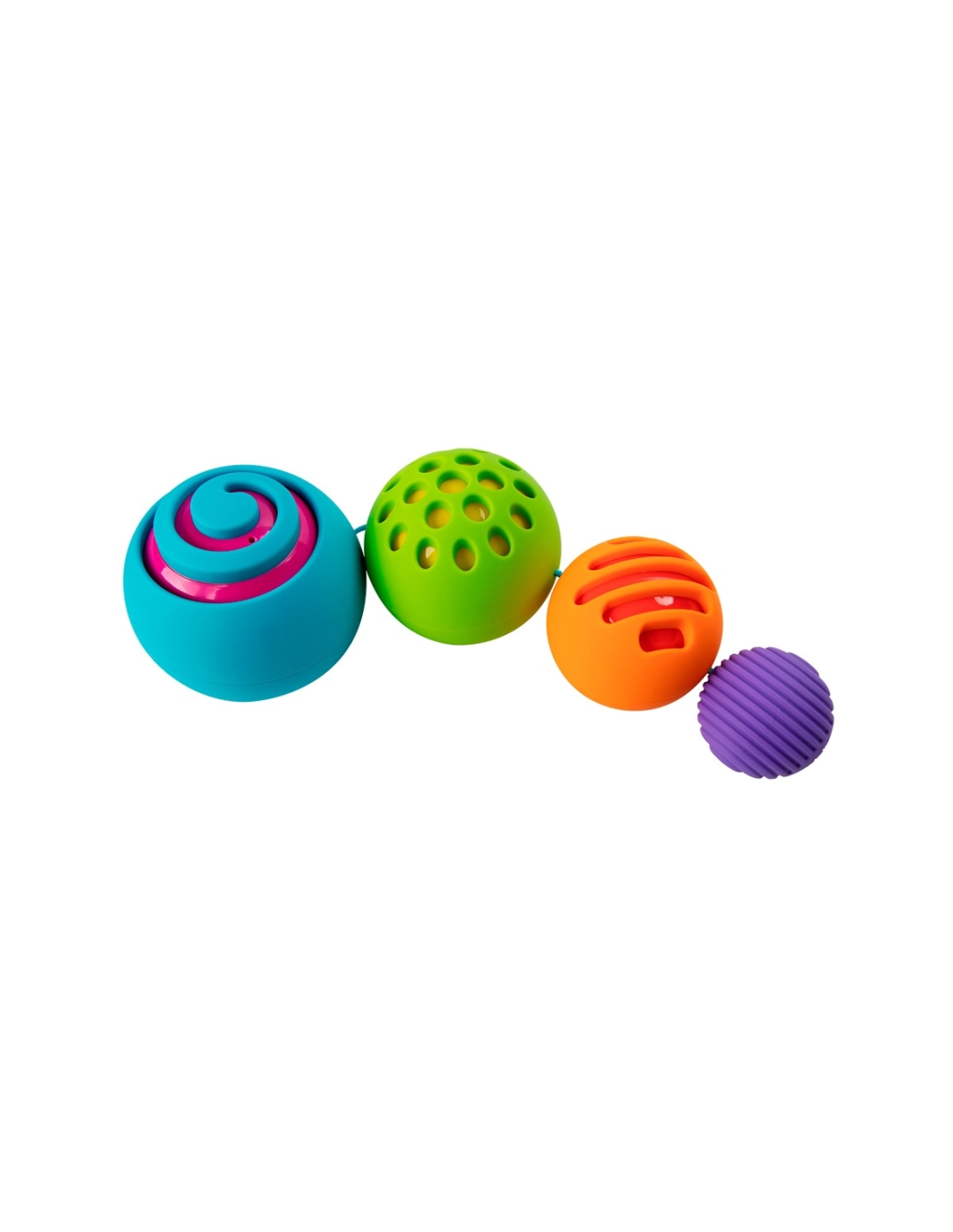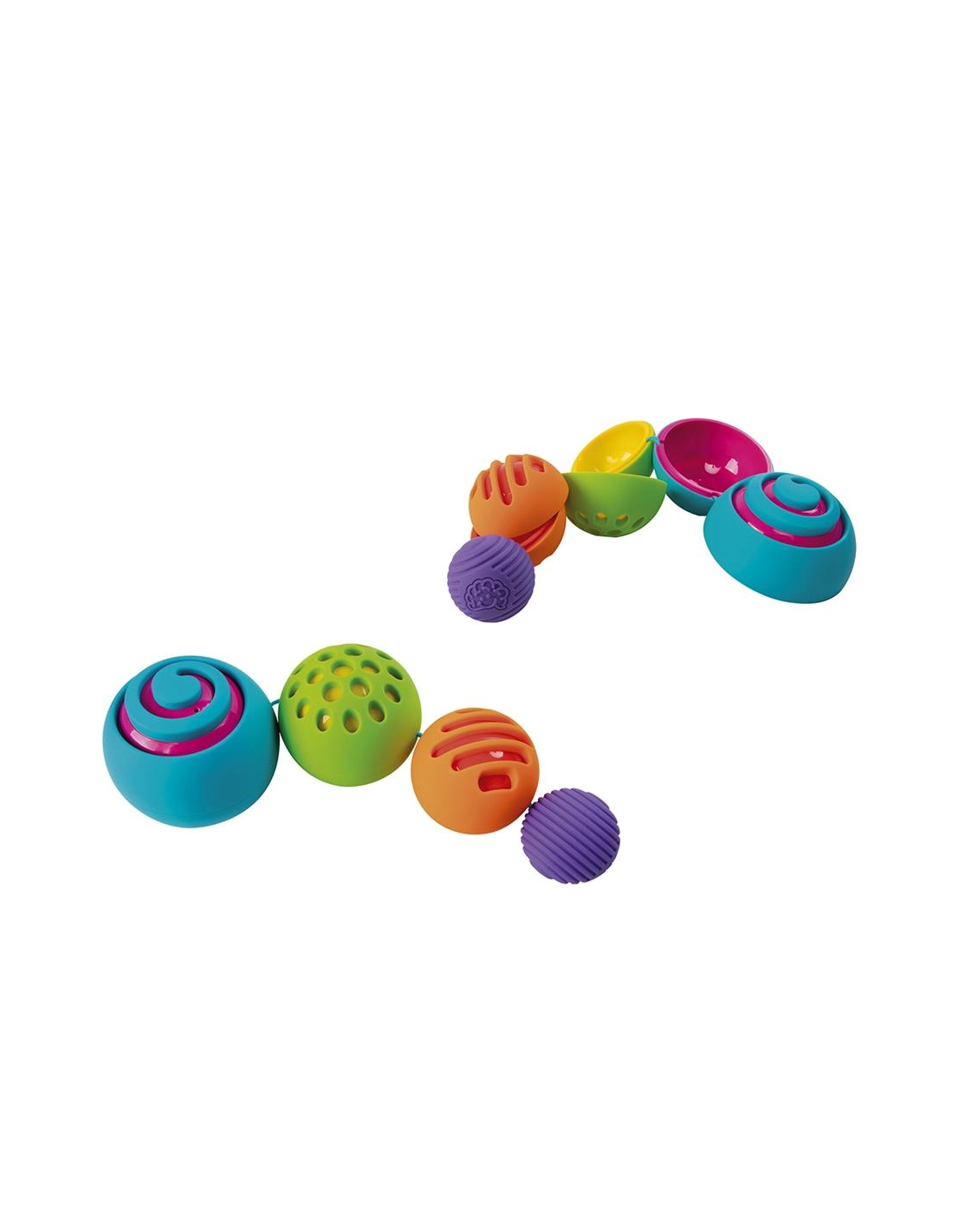 L’OombeeBall de Fat Brain Toys est une série de boules texturées et encapsulées, conçues pour offrir aux enfants une exploration tactile passionnante. Chaque boule, reliée par des attaches courtes et sûres, est ornée de textures fascinantes telles que des points, des lignes et des spirales. Les boules s’ouvrent et s’emboîtent les unes dans les autres, offrant des heures de jeu et d’apprentissage.