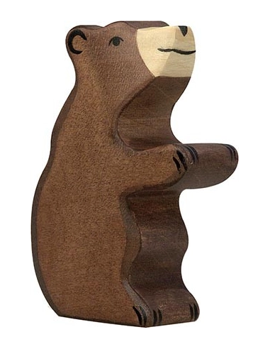 Figurine ours brun petit, assis en bois - Animaux de la jungle Holztiger