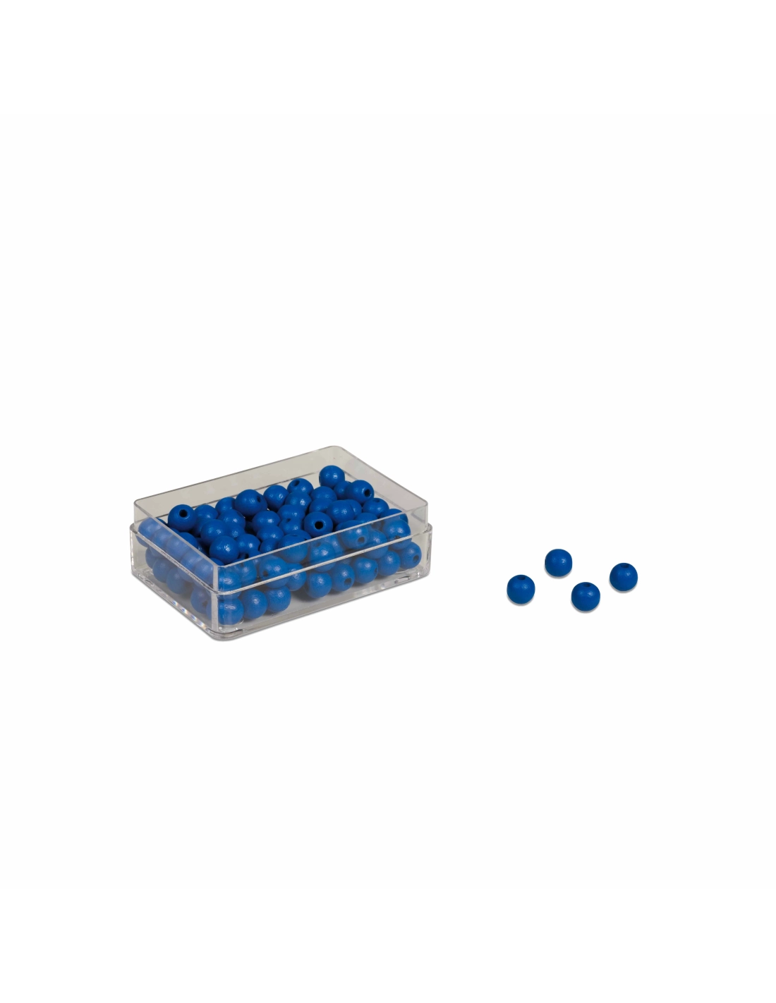 Boîte en bois contenant 100 perles vertes