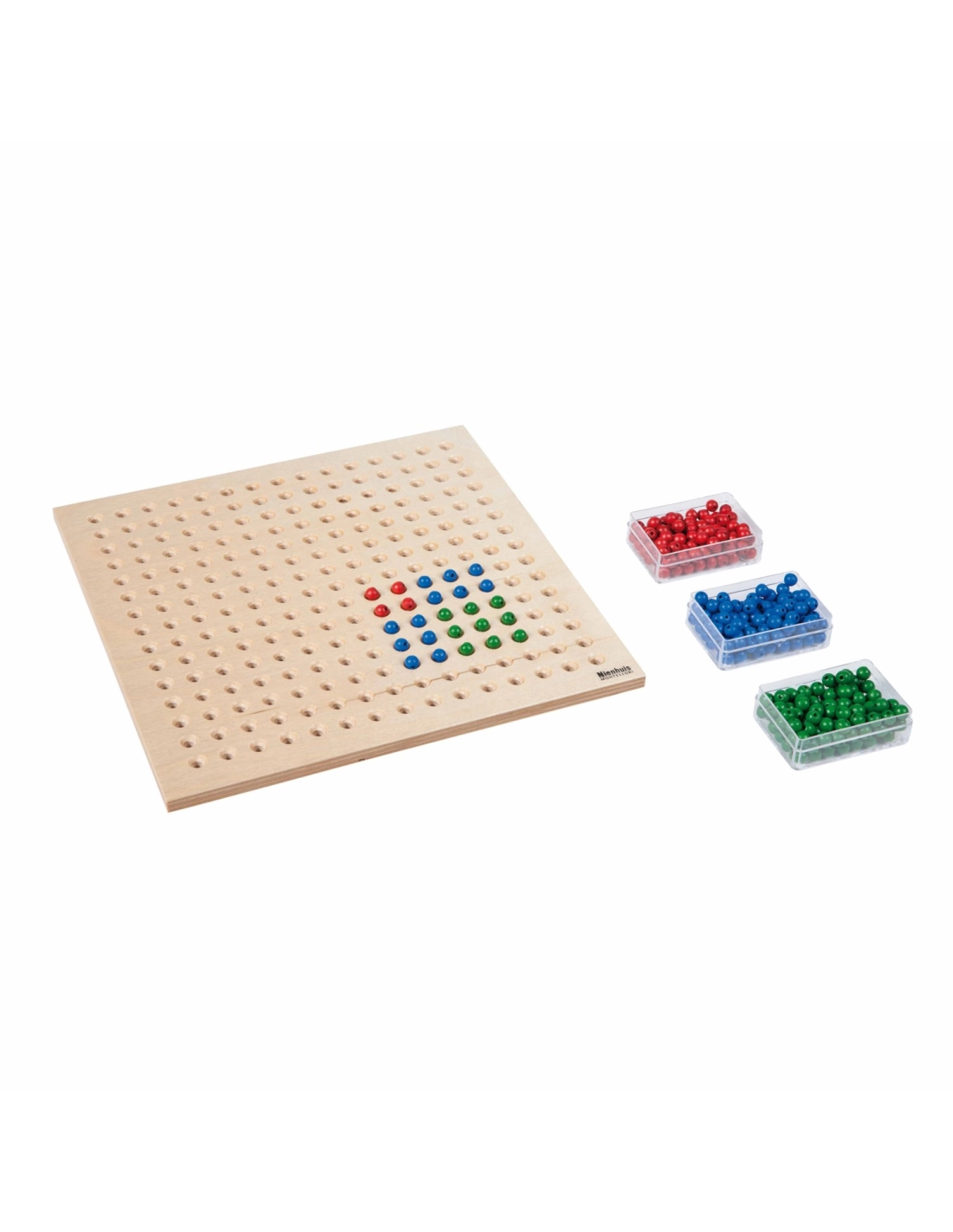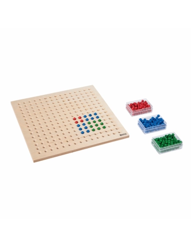 Le Grand Tableau des Racines Carrées est un matériel Montessori fondamental pour découvrir les concepts des racines carrées et des puissances. Sa planche perforée accueille les clous colorés pour une exploration mathématique sensorielle.