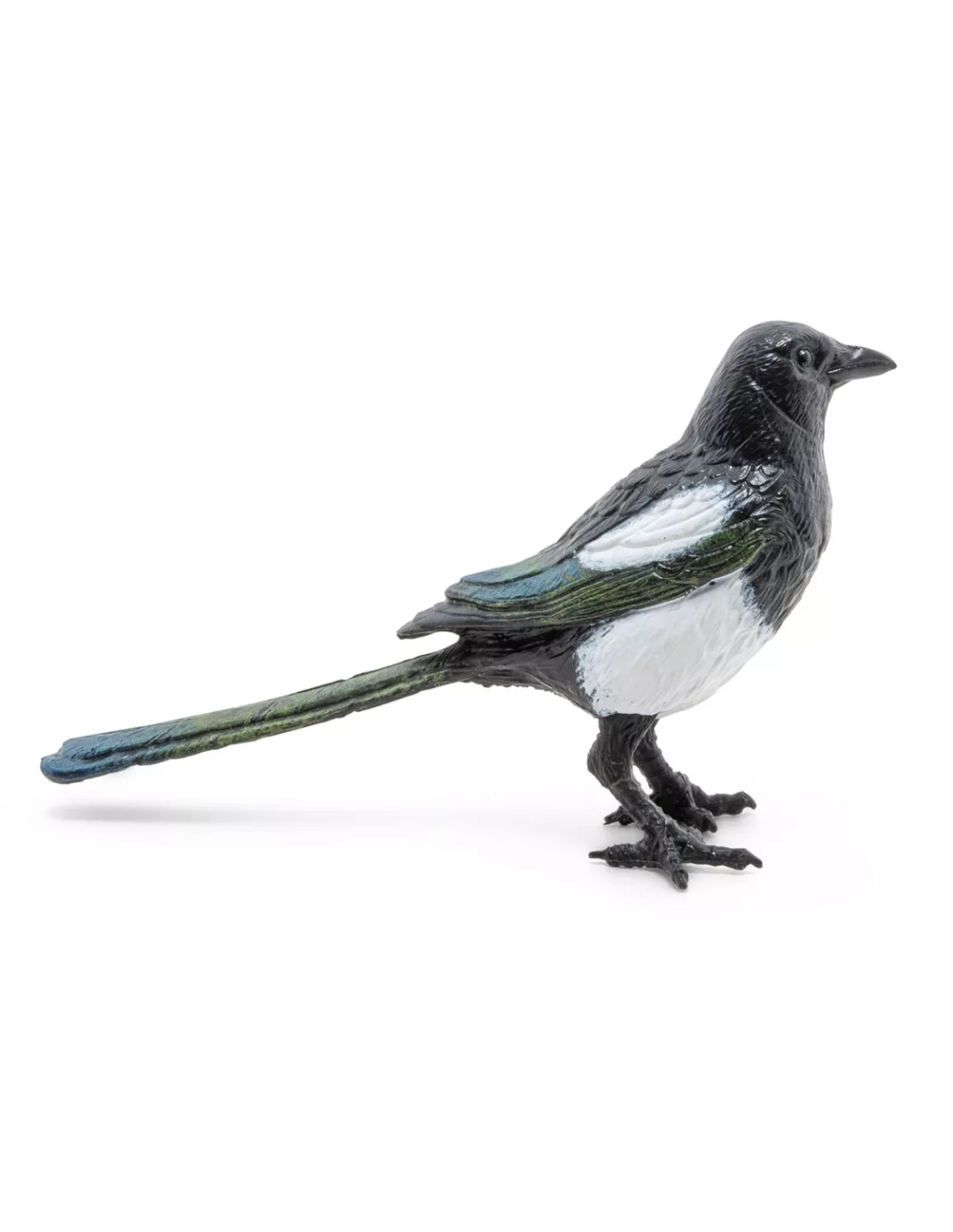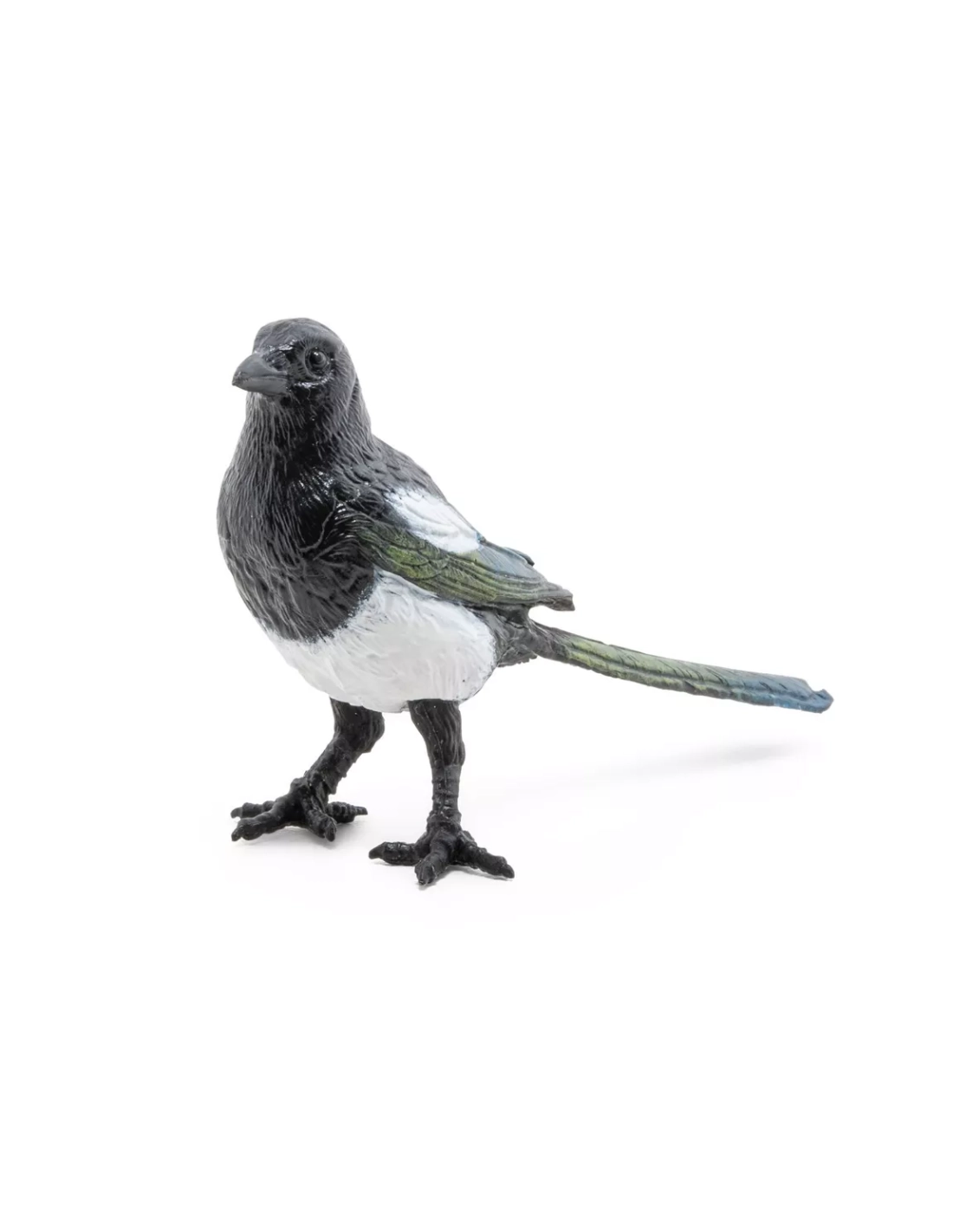 Ce corvide intelligent fascine par ses capacités cognitives exceptionnelles et son adaptation urbaine, intelligence reproduite dans cette figurine d'oiseau de collection.