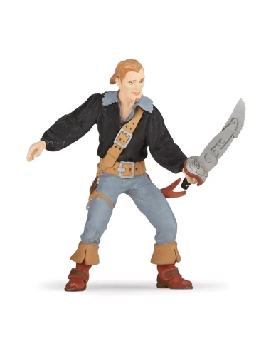 Dans la collection Papo, chaque personnage a une fonction narrative claire : le capitaine commande, le corsaire aborde, le zombie terrifie, la femme corsaire surprend. Le Pirate Héros, lui, a quelque chose que les autres n'ont pas : un but personnel. Il ne combat pas pour l'équipage, ni pour le trésor, ni pour le capitaine. Il combat pour retrouver quelqu'un. Cette motivation — simple, universelle, immédiatement compréhensible par un enfant de 3 ans — en fait le personnage le plus facilement projetable de toute la gamme : celui dans les mains duquel l'enfant met sa propre histoire.