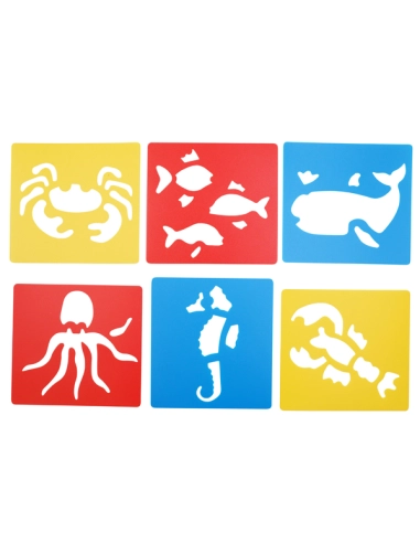 Lot de 6 pochoirs lavables Animaux de la Mer 15cm