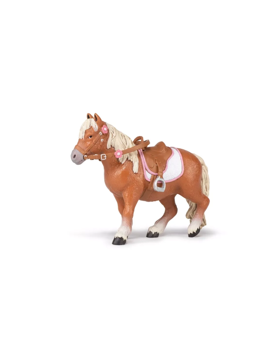 Figurine poney Shetland Papo reproduction authentique. Plus petit équidé monde adaptation biotope rigoureux. Race britannique îles Écosse tradition minière.