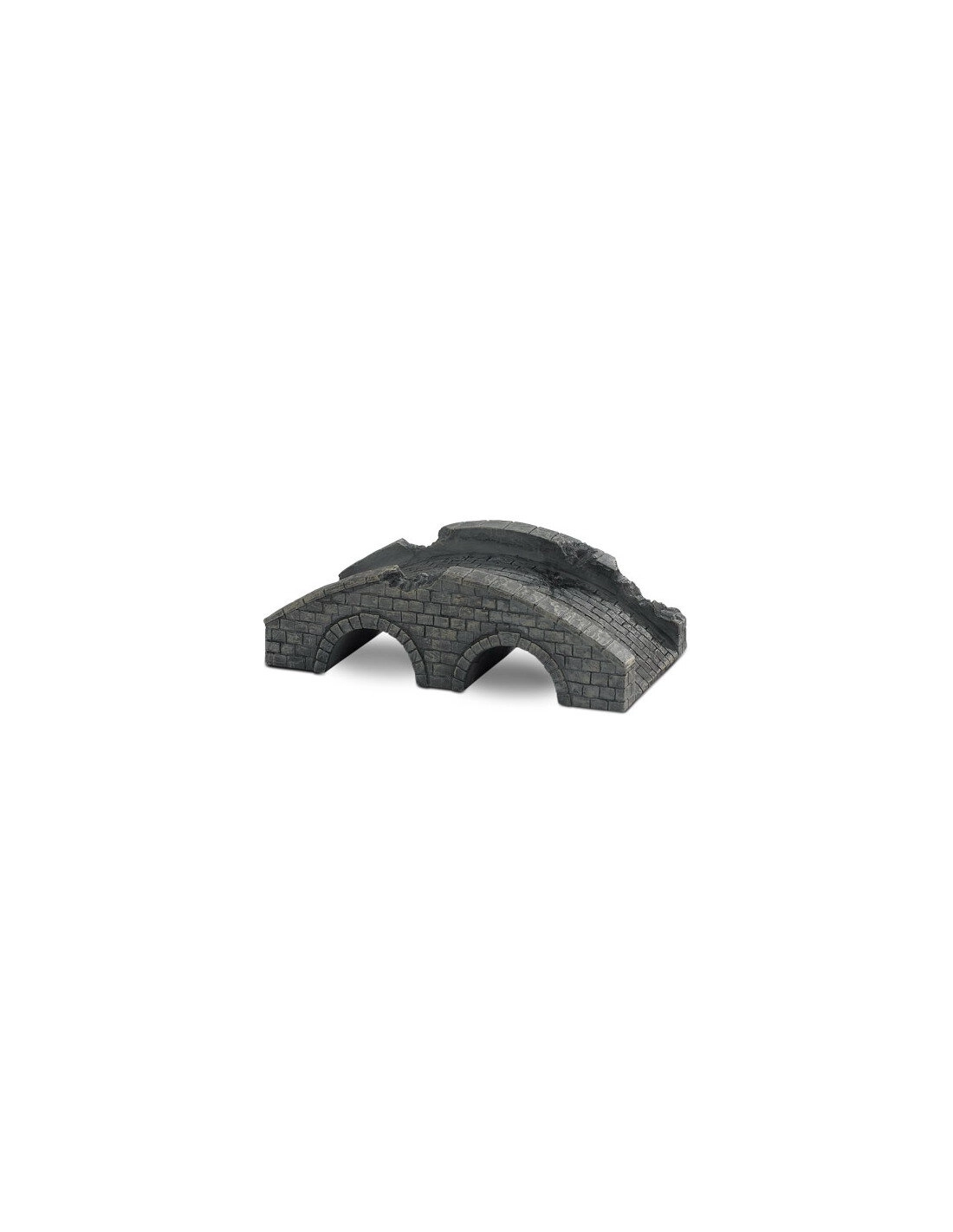Double arche en pierre grise, appareillage en moellons taillés, surfaces usées et érodées : ce décor Safari Ltd reproduit un pont en pierre de style XIXe siècle américain, compatible avec les figurines à l'échelle standard. Il pose immédiatement une scène, crée une géographie, donne un point de passage à défendre ou à traverser.