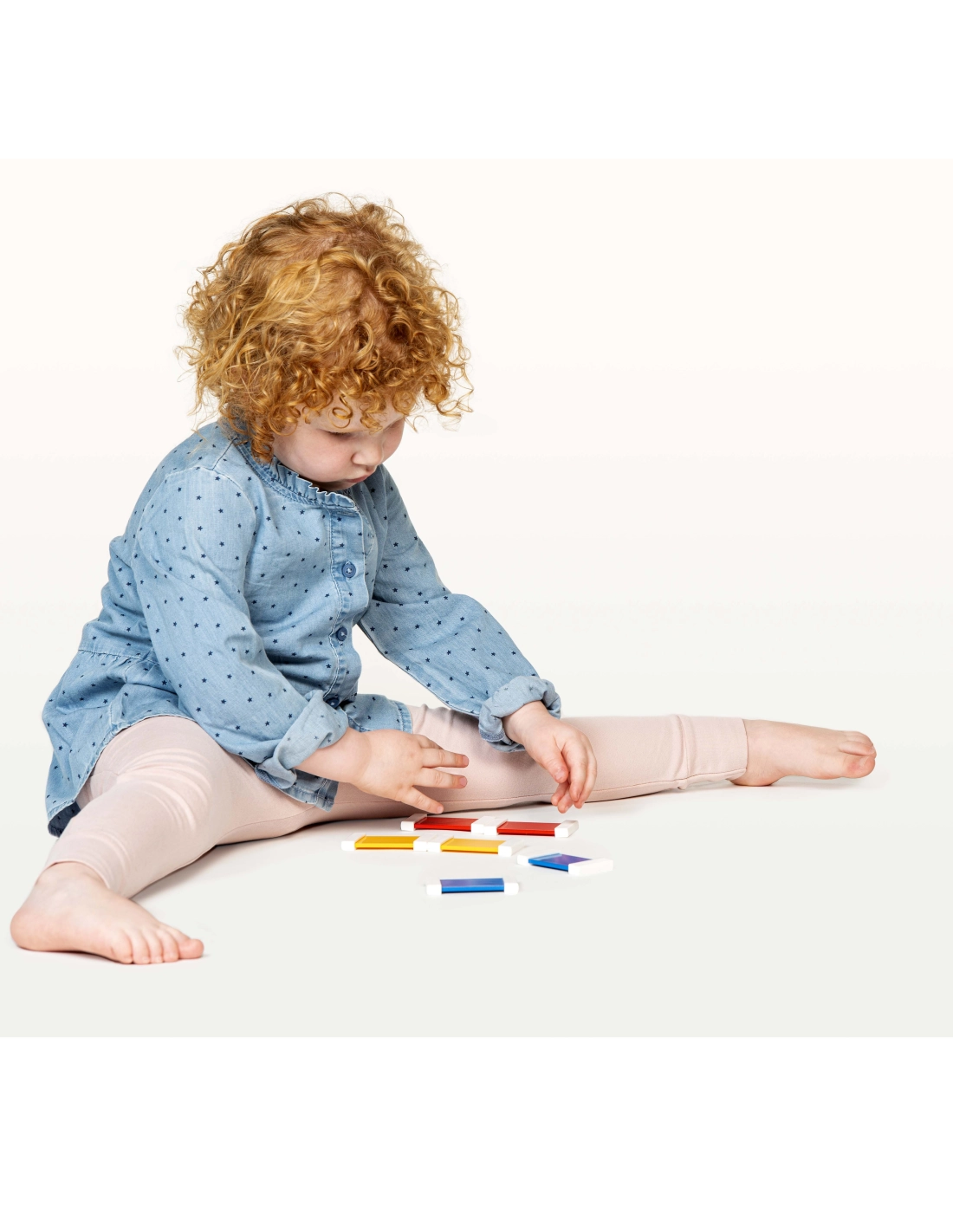 - Tri des paires : Mélangez les tablettes et montrez à l'enfant comment les regrouper par couleur.