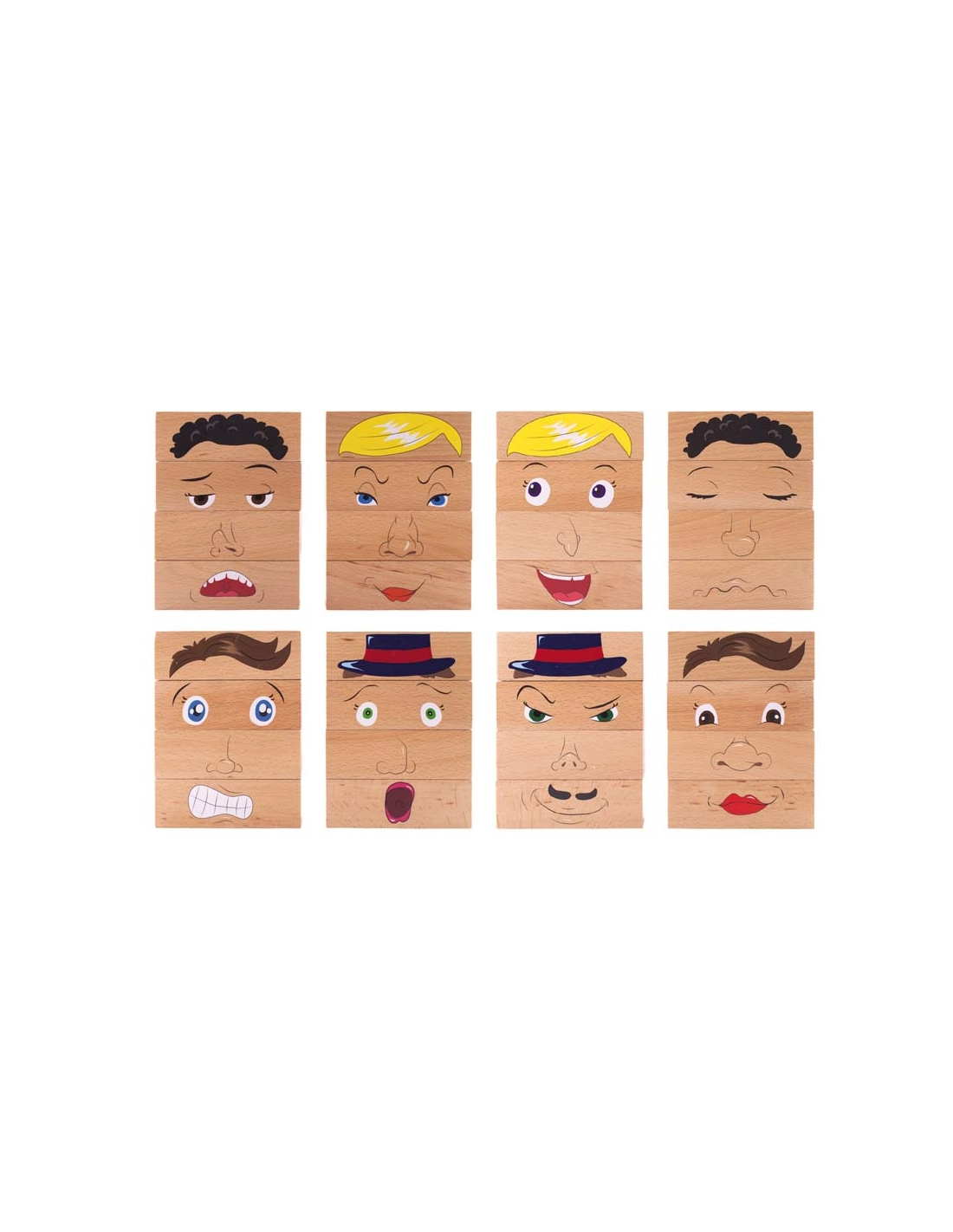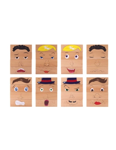 Ce puzzle innovant transforme l'apprentissage des émotions en jeu de construction fascinant. Votre enfant manipule les cubes en bois, observe les détails de chaque expression et comprend comment se forment les émotions sur un visage. Une méthode concrète et ludique pour développer la reconnaissance émotionnelle.