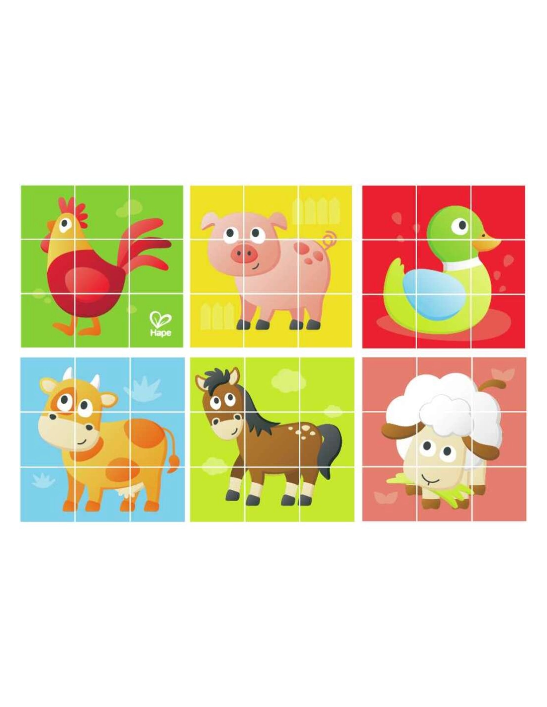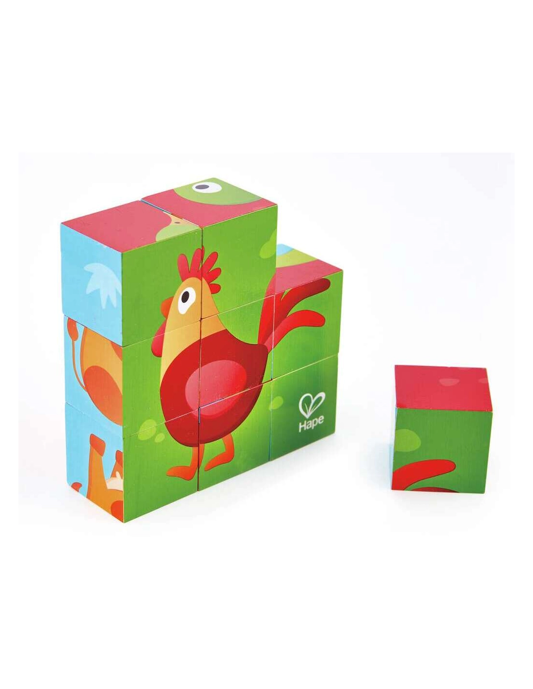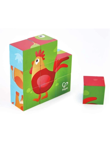 Puzzle 9 cubes en bois de haute qualité pour découvrir les animaux de la ferme. Parfait pour les petites mains dès 2 ans, ces cubes permettent de composer 6 adorables animaux tout en développant la motricité fine et la logique.