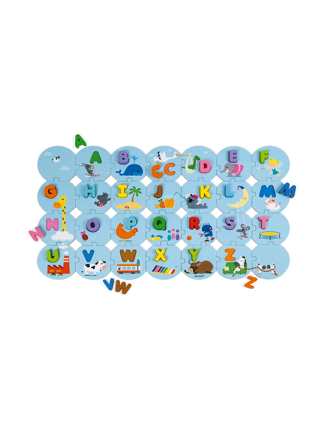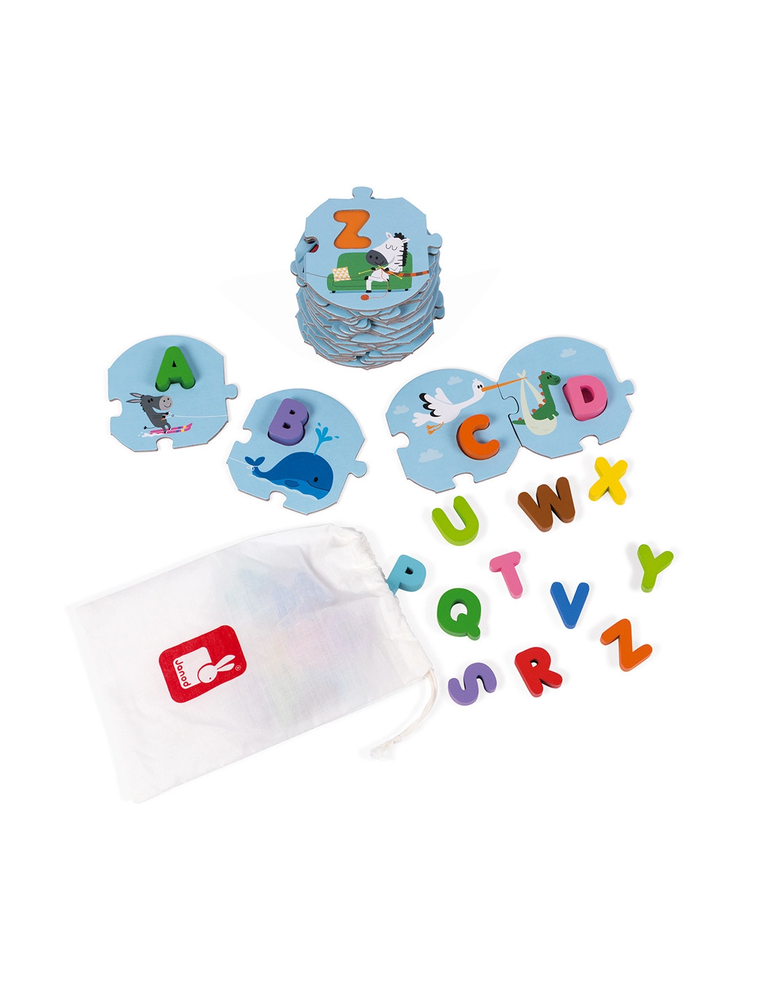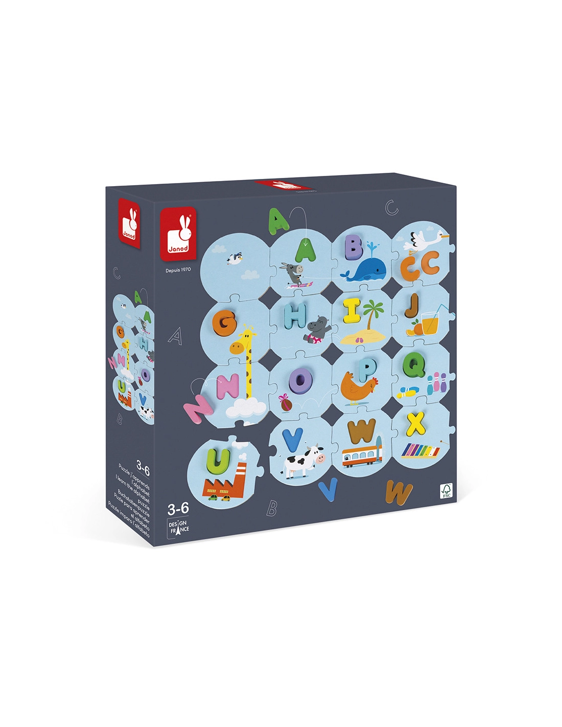 Découvrez le puzzle Janod J’apprends l’alphabet en bois et carton.
