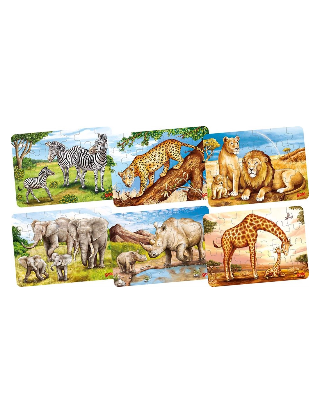 Lot de 6 puzzles en bois - Animaux de la savane africaine - Découverte ludique et...