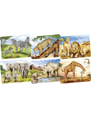Lot de 6 puzzles en bois - Animaux de la savane africaine - Découverte ludique et...