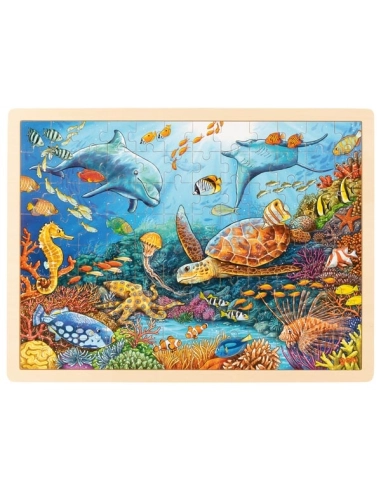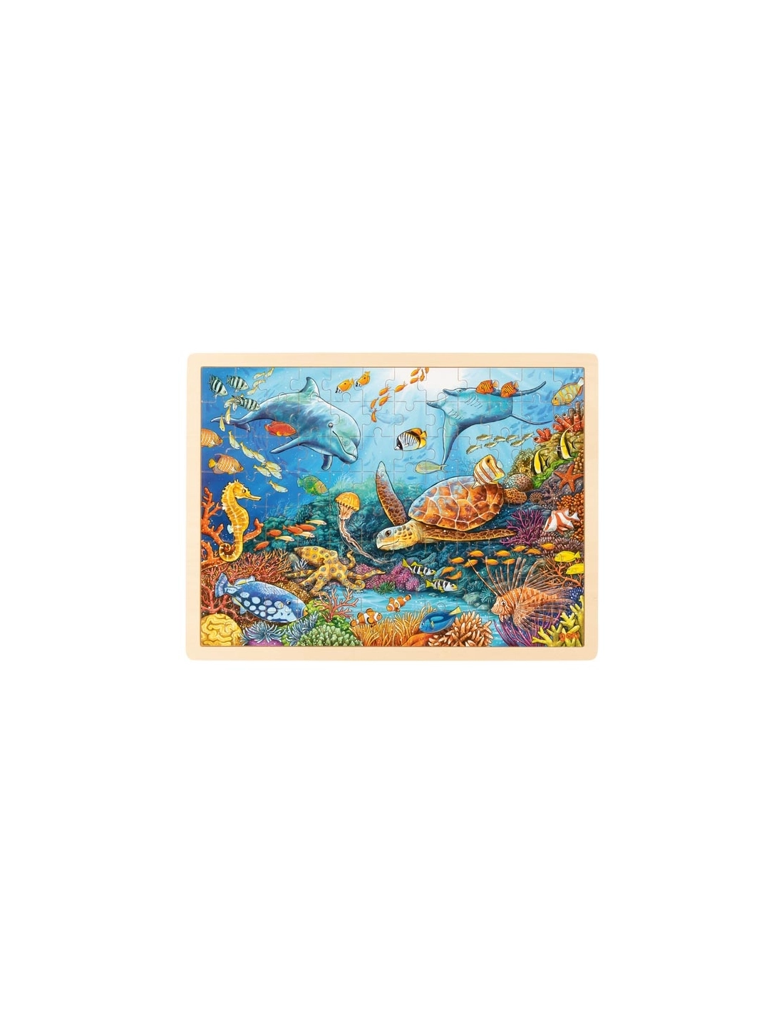 L'illustration de ce puzzle en bois de 96 pièces s'inspire de la Grande Barrière de Corail située au large des côtes australiennes. Vous pouvez accompagner celui-ci de figurines.