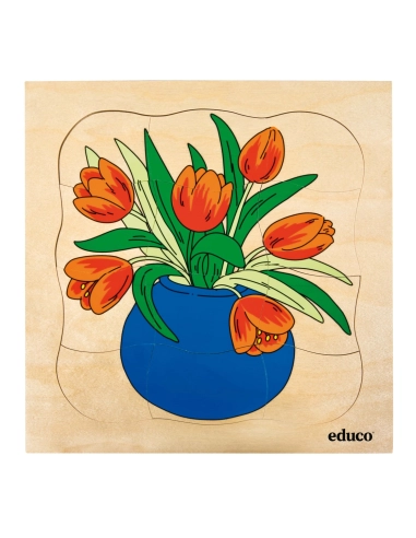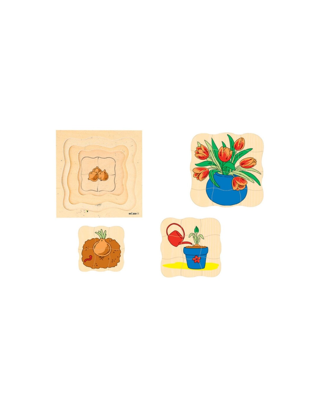 Ces puzzles imaginatifs à plusieurs niveaux aident à comprendre le concept de cycle de croissance. Chaque puzzle représente une phase différente du cycle de vie de la tulipe, du bulbe à la fleur épanouie. La série montre le passage du temps avec l'évolution des images, où chaque étape de croissance est plus grande et nécessite plus de pièces pour compléter l'image.