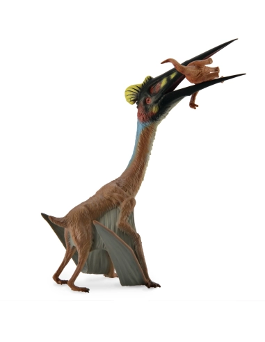 Découvert dans les années 1970 au Texas, le Quetzalcoatlus a été nommé en l'honneur du dieu aztèque Quetzalcoatl. Ses envergures pouvaient atteindre jusqu'à 10 mètres, faisant de lui l'un des plus grands ptérosaures. Cette figurine de CollectA capture parfaitement ce prédateur ailé en pleine action.
