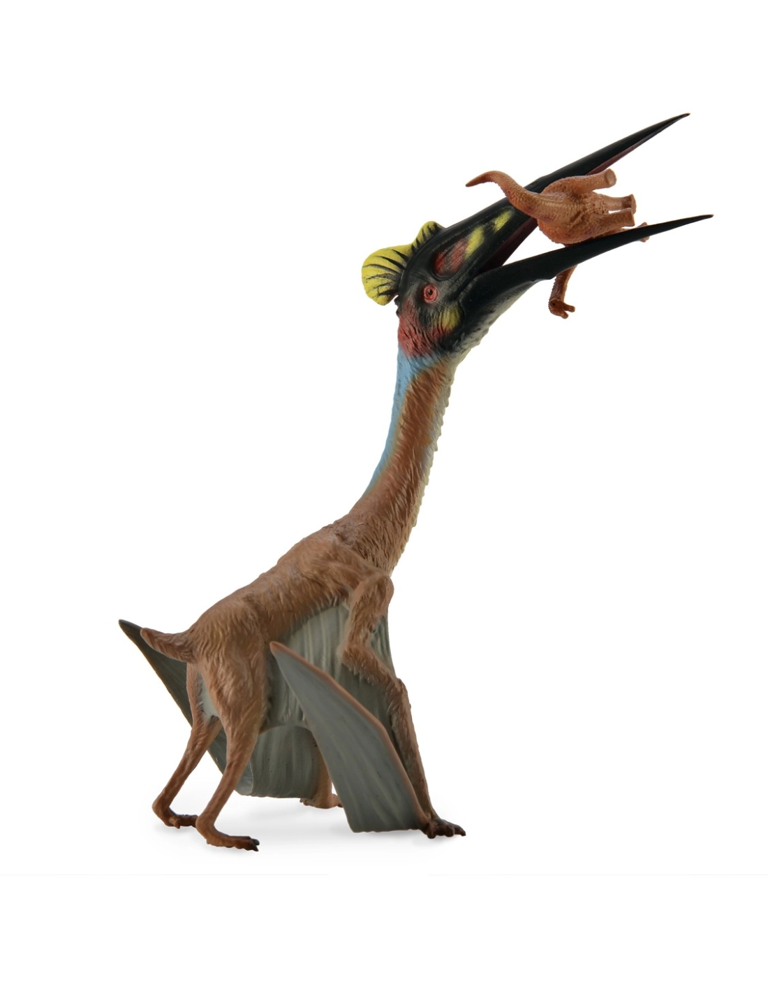 - Pose dynamique : Le Quetzalcoatlus est représenté en train de saisir sa proie, offrant un aperçu fascinant de son comportement prédateur.