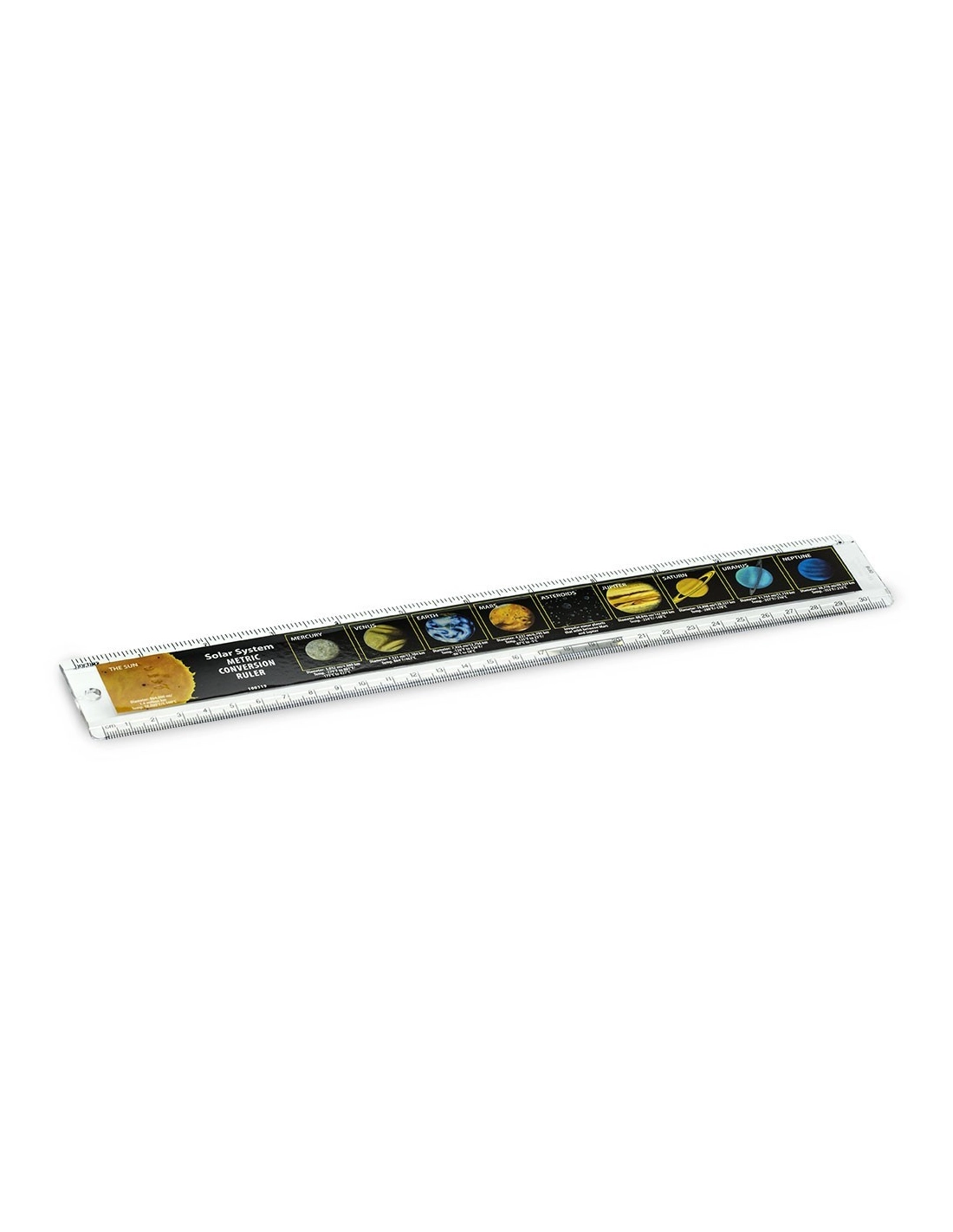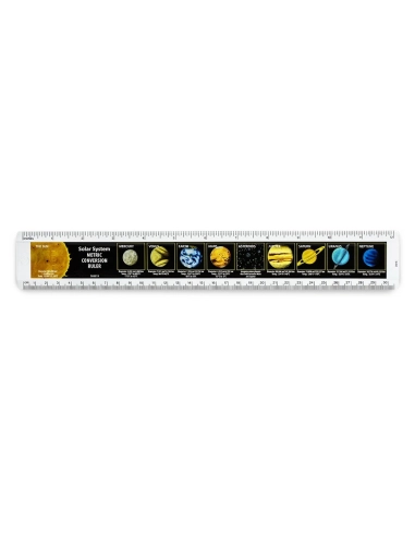La règle du système solaire comporte deux échelles de mesure, une métrique et une standard US (inche) , qui permettent de convertir facilement les unités.
