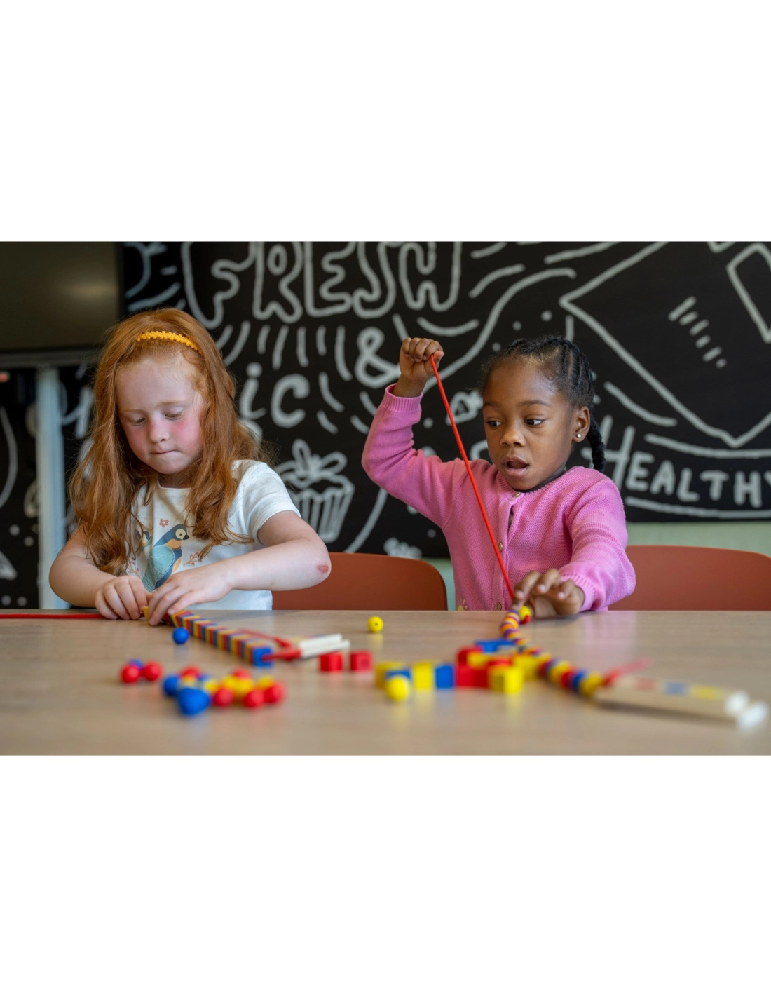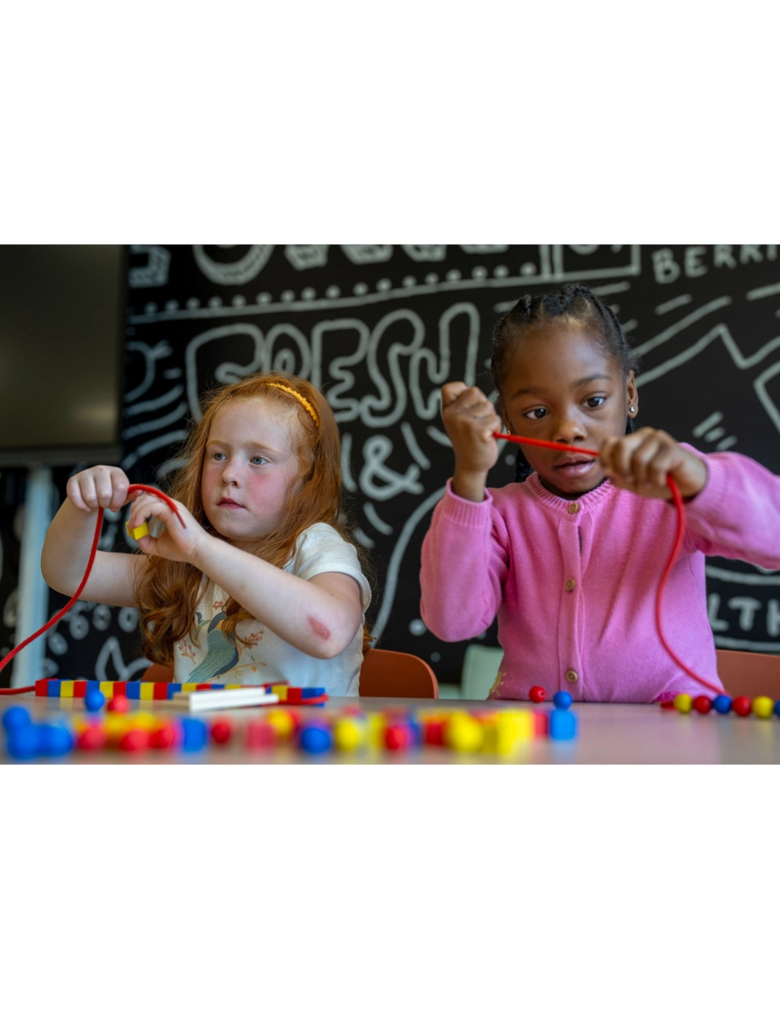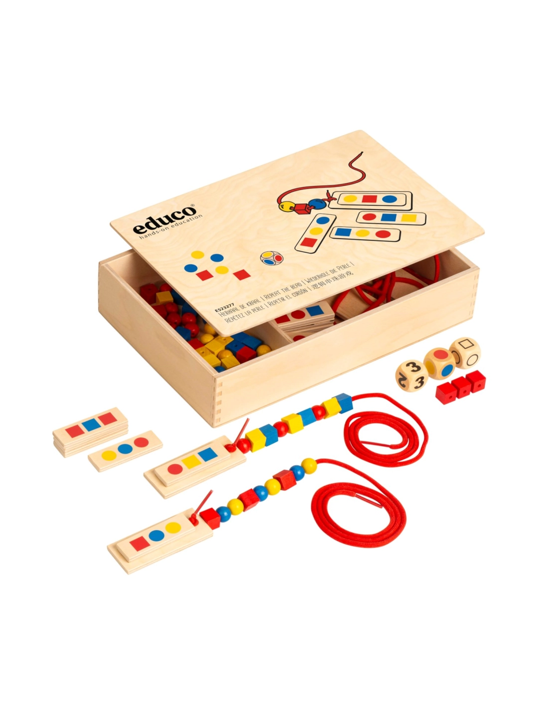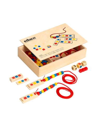 - Reconnaissance et création de séquences : Les enfants apprennent à créer des séquences en utilisant des perles de différentes formes et couleurs.